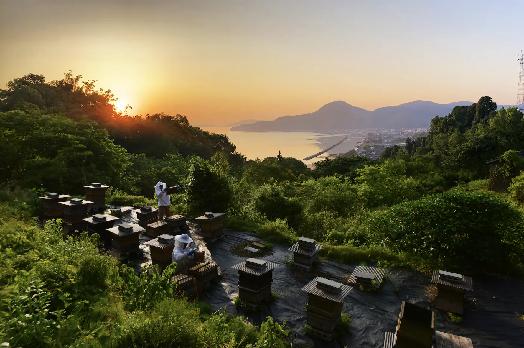 私は山口県出身ですが、養蜂との縁は深く、鹿児島に住む祖父母の代から3代にわたりミツバチと共に歩んできました。現在は父も山口県内で養蜂を営んでおり、それぞれが異なる場所でミツバチと向き合っています。私は2010年に周防大島へ移住し、この島での養蜂をスタートさせました。周防大島は瀬戸内のハワイとも呼ばれる自然の宝庫。穏やかな海と緑豊かな山々が広がるこの島で、ミツバチと人が共に生きる新しい循環のモデルをつくっています。