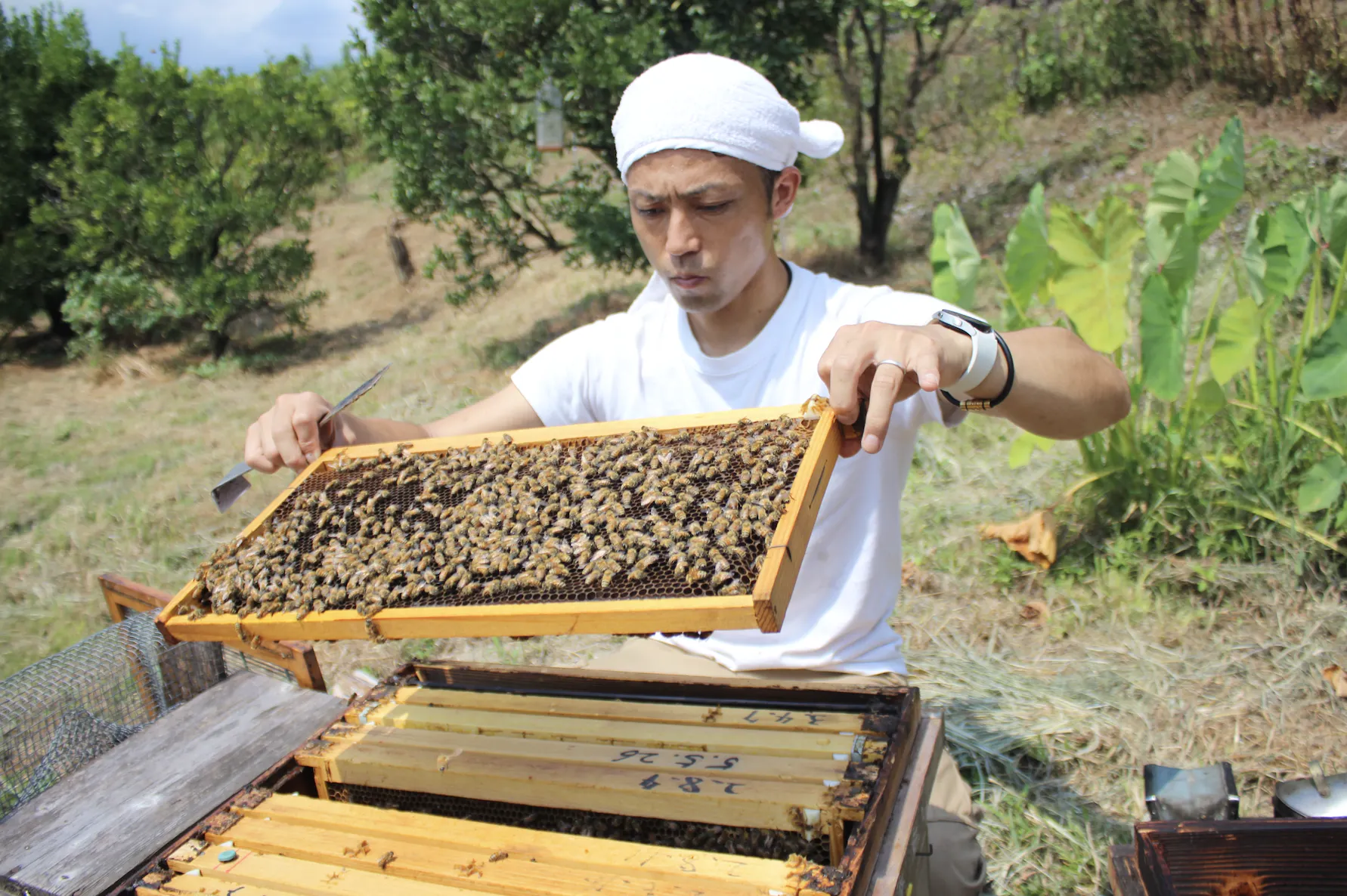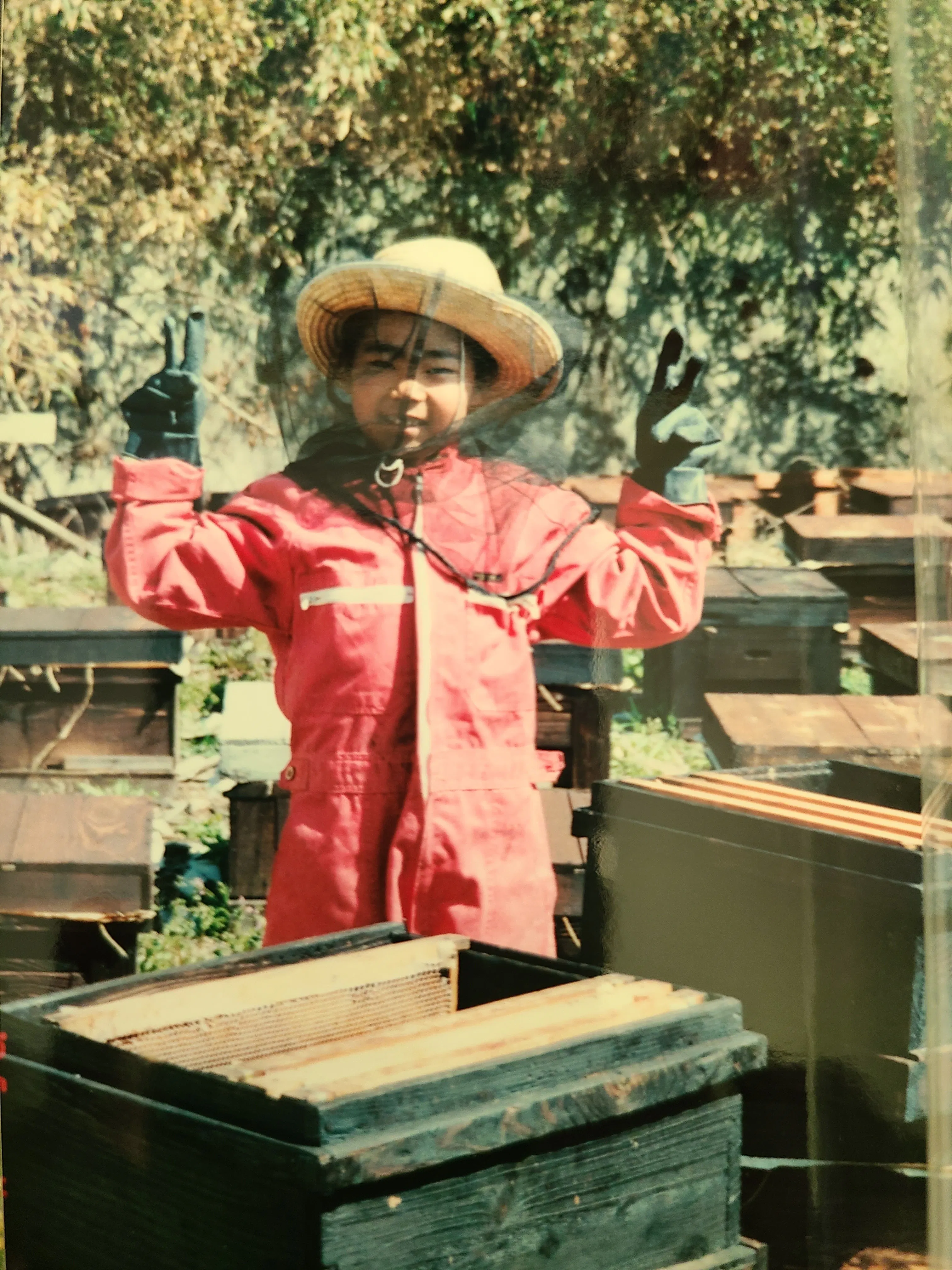 遊び場はいつも養蜂場で、巣箱の上を飛び跳ねて遊ぶ日々。どこにいてもミツバチがいて、私にとっては大切な遊び相手であり家族のような存在でした。この原体験が、今の私の根源にあります。