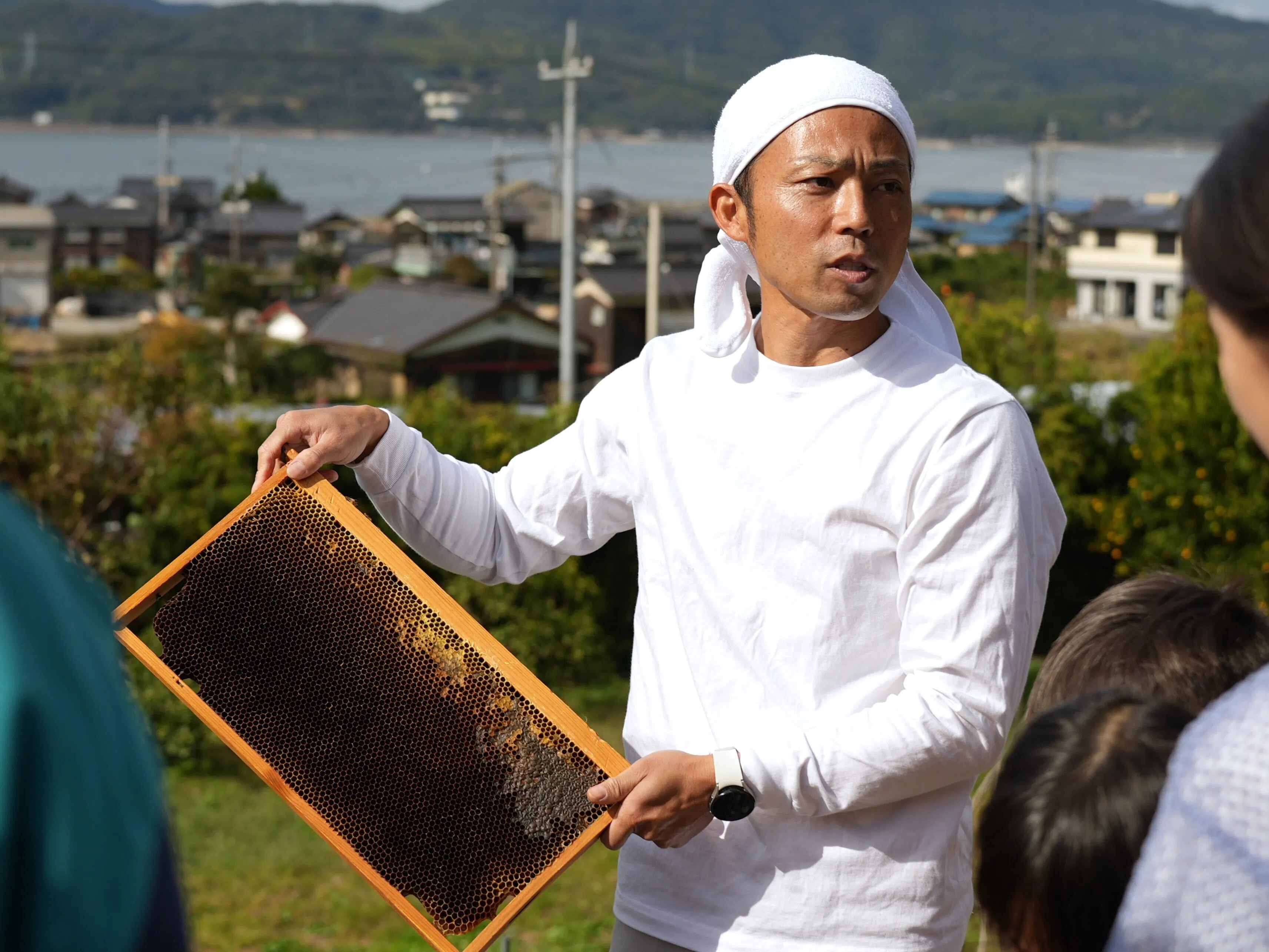 ラボでは、採れたてのハチミツをその場でスイーツにかけて味わう体験プログラムを計画しています。2024年から試験的に開始した採取体験には、既に関東、関西、九州、そして北海道と、全国各地から多くの方が訪れています。この「ミツバチ共生ラボ」を拠点に、さらに多彩なプログラムを展開し、周防大島の豊かな自然とミツバチの営みを全身で感じていただきたいと考えています。