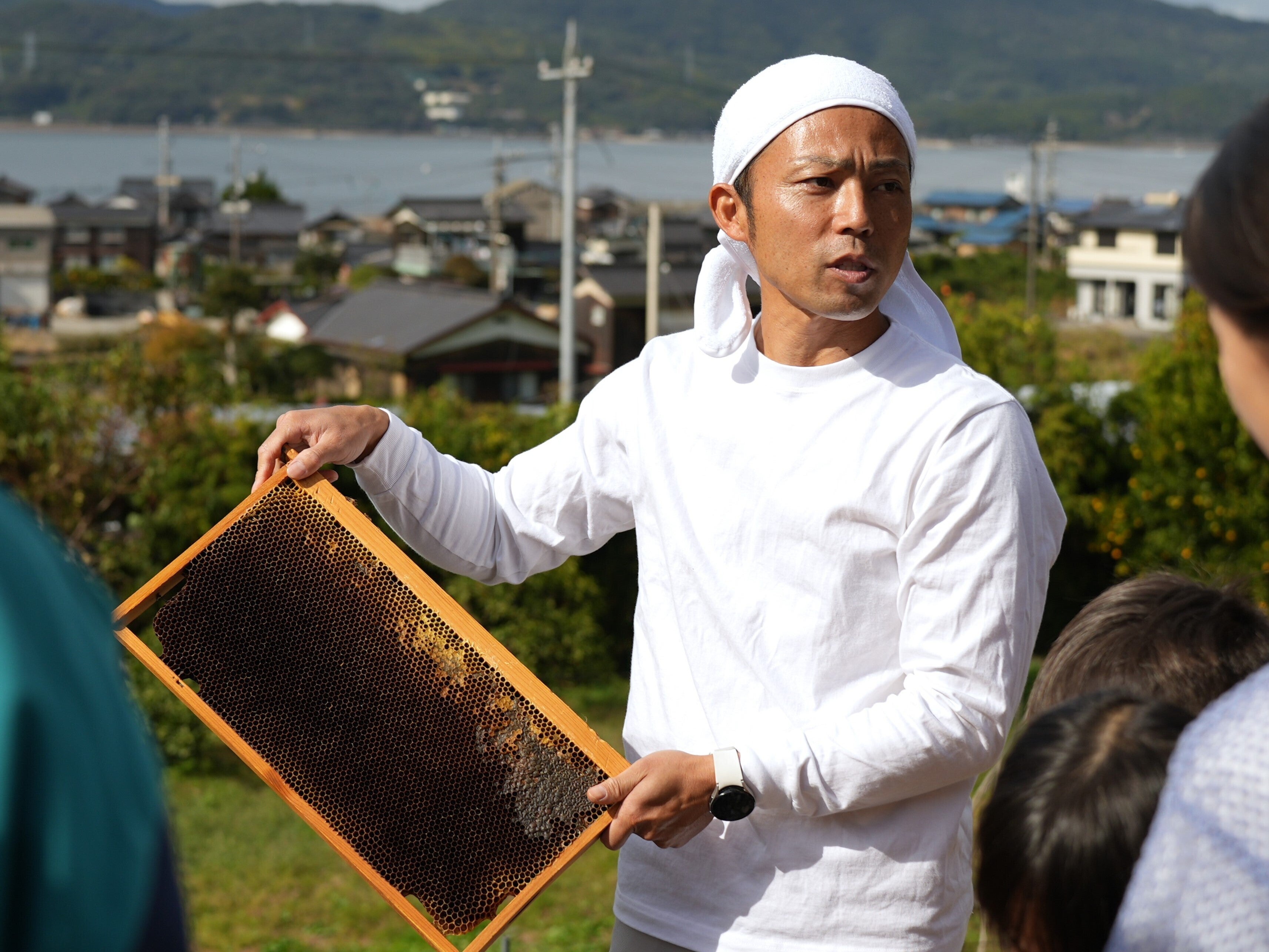 2010年に周防大島で起業し、ミツバチの飼育から生産、販売までを一貫して手がけるようになりました。しかし、ハチミツを採るだけでは十分ではありません。ミツバチが元気に飛び回れる環境を作るため、耕作放棄地を整備して菜の花やヒマワリを植え、山には桜を植樹する活動も続けてきました。