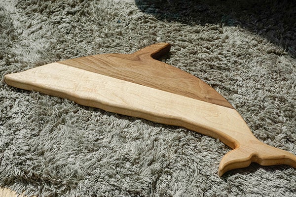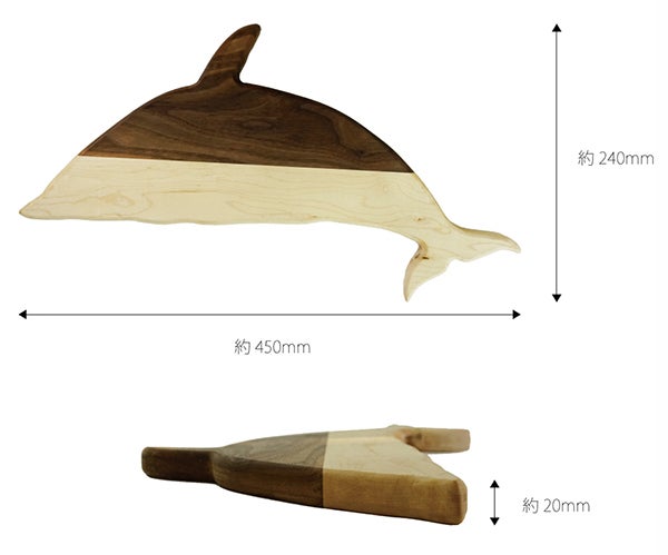 イルカの木製プレートは二つの種類の木を接着剤で張り合わせ、