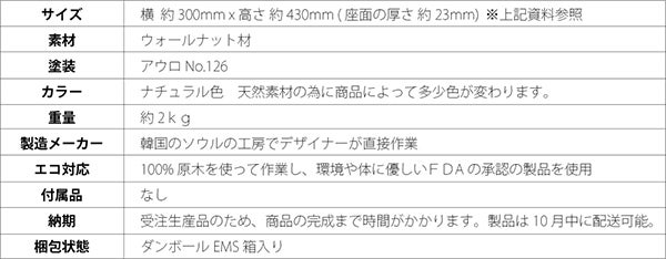 韓国に販売しているウォールナットスツールの 価額は₩270,000、