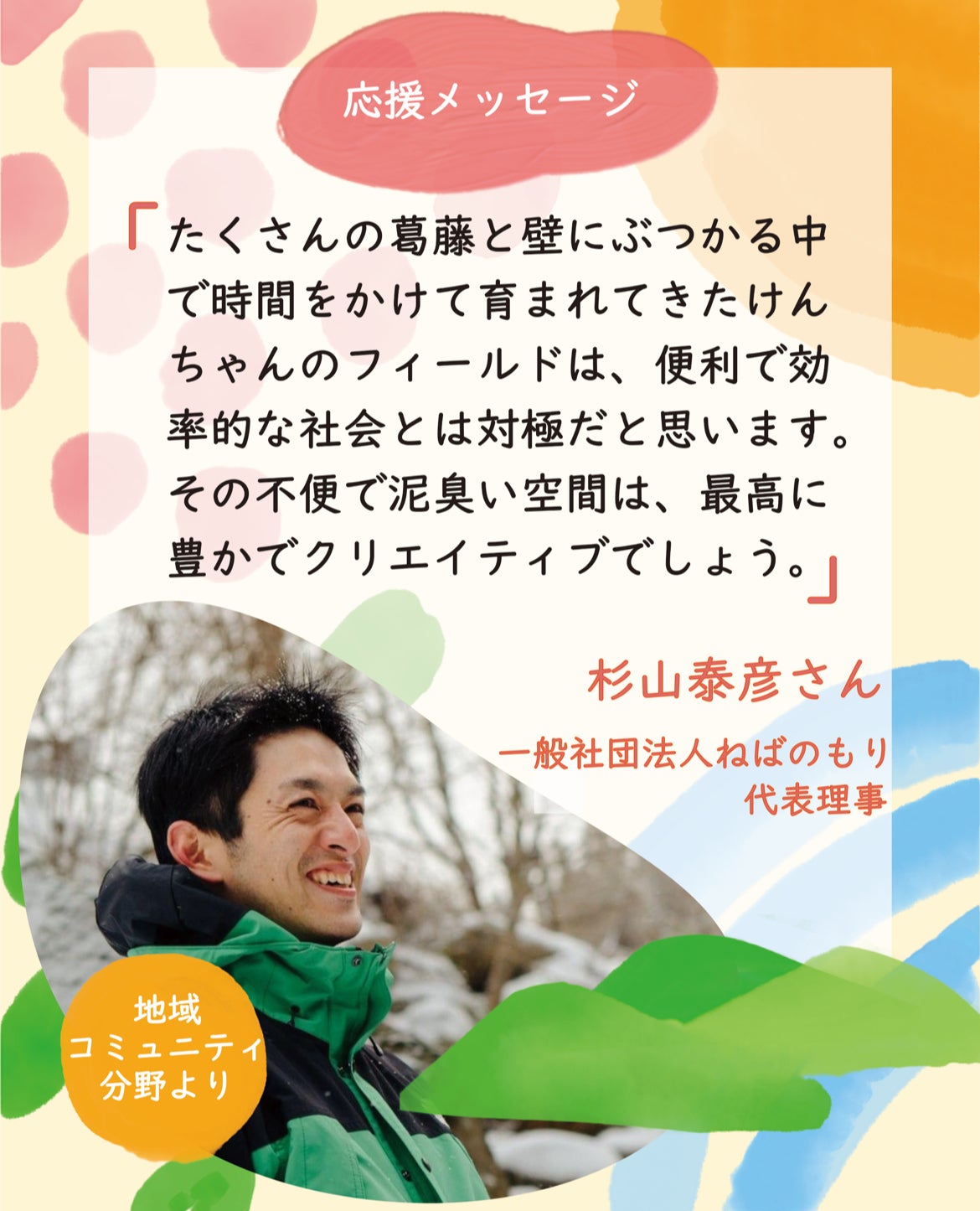 私、けんぴが、地方創生事業をするスタートアップの企業で切磋琢磨した仲間、"杉山泰彦さん(マギー)"から応援メッセージをもらいました!