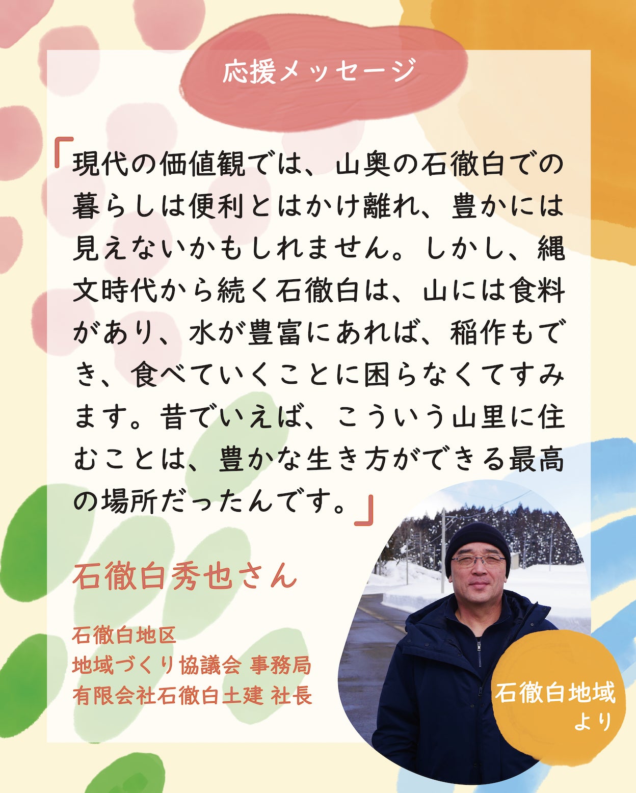 ◉石徹白 秀也(いとしろ ひでなり)さんから 応援の言葉
