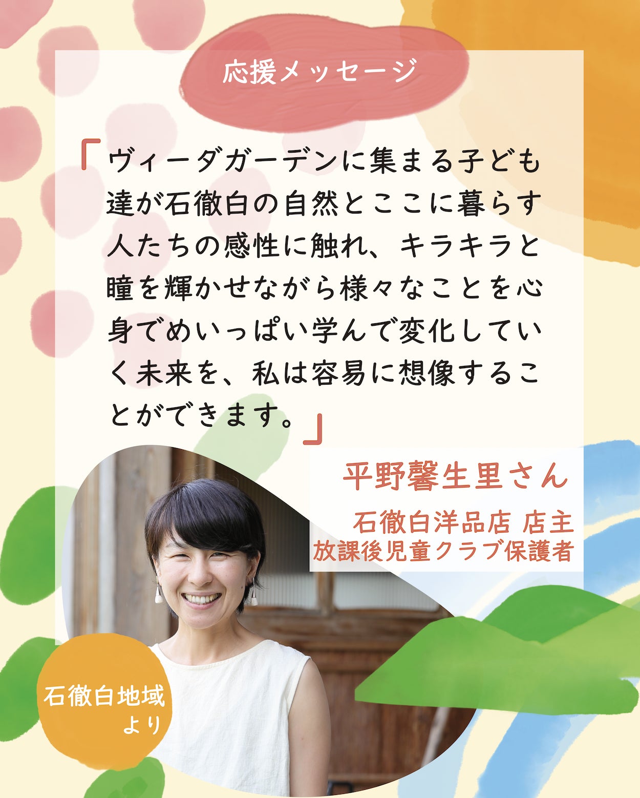 ◉平野馨生里(ひらの かおり)さんから 応援の言葉