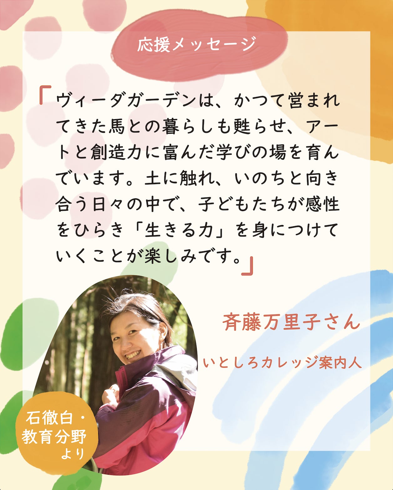 ◉斉藤 万里子さん(さいとう まりこ)より 応援の言葉