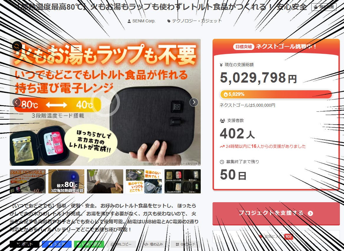 2026/03/13 19:00停電時やガスが使えない状況でも、モバイルバッテリーがあれば使用可能。備蓄しているレトルト食品を温かい状態で食べられます。いざという時の“安心”をプラスします。私たちは人のお役にたつ物をだけを企画しております。是非タップしてご確認ください。 ↓ ↓ ↓https://camp-fire.jp/profile/SENM-Corp/projects もっと見る