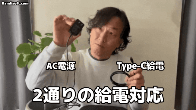 本製品は、コンセント給電だけでなくType-C給電にも対応しているため、