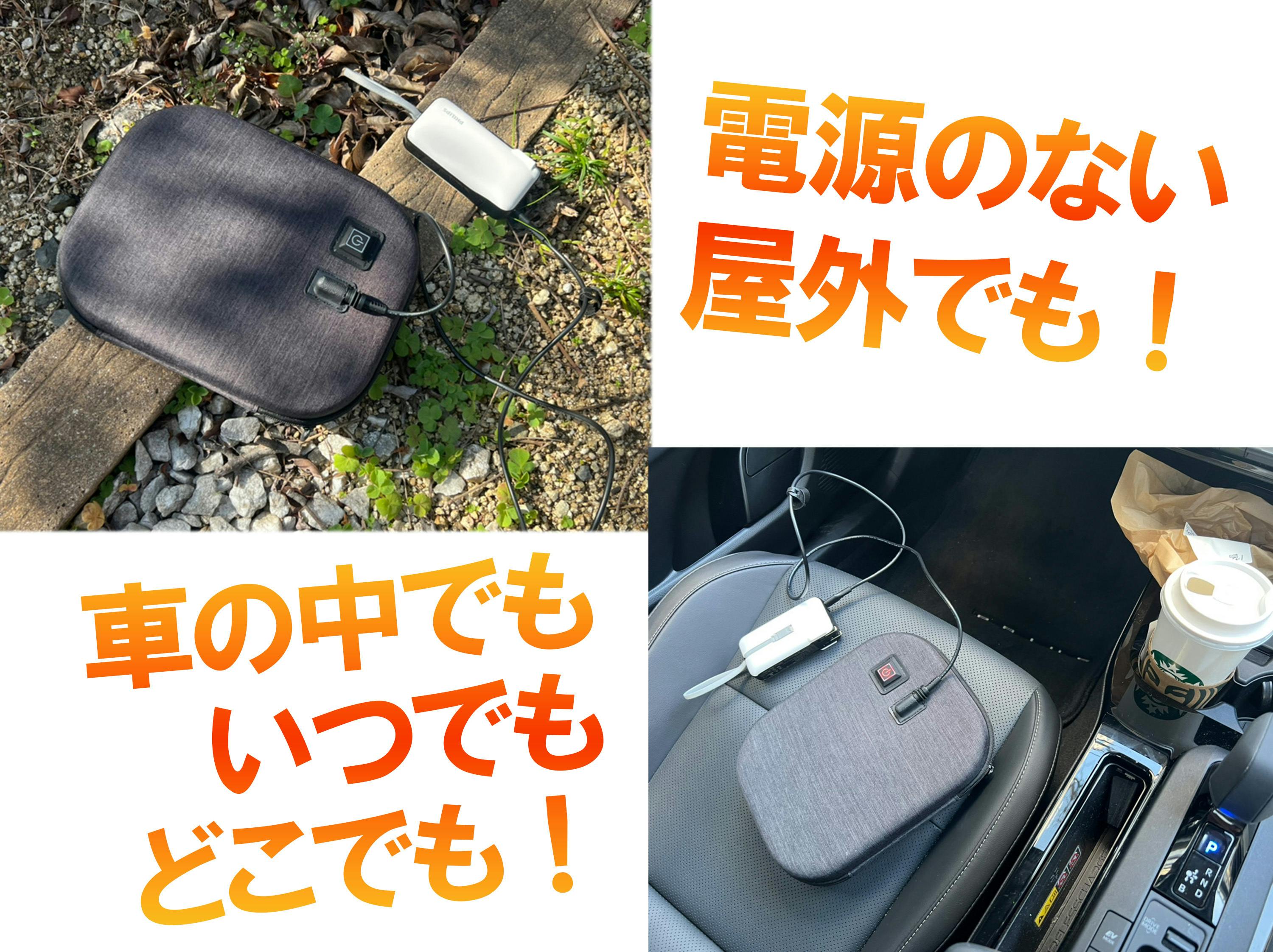 はい。火を使わない設計のため、車内や車中泊でも安心して使用できます。車載電源やモバイルバッテリーからの給電にも対応しています。