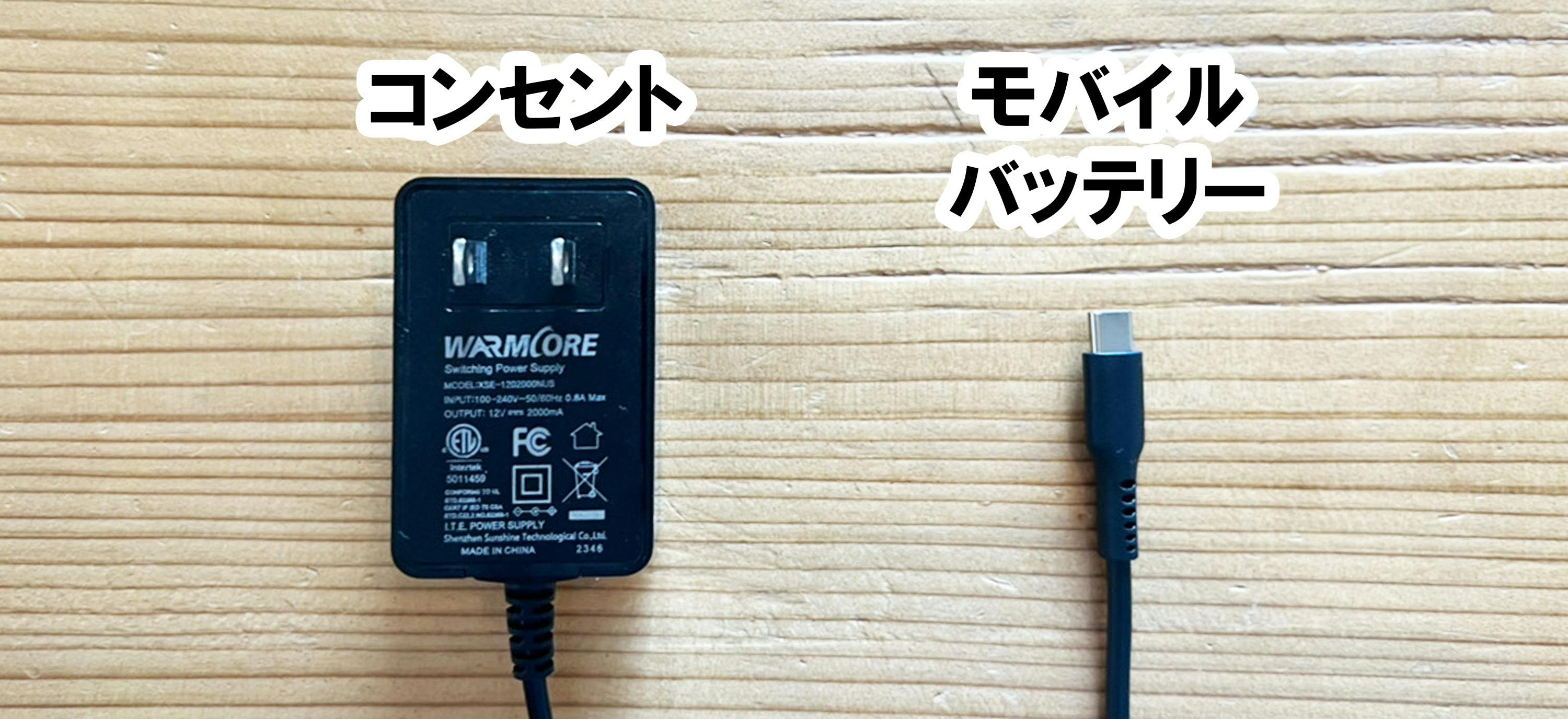 コンセント・TypeC給電、両パターンの専用コード付き