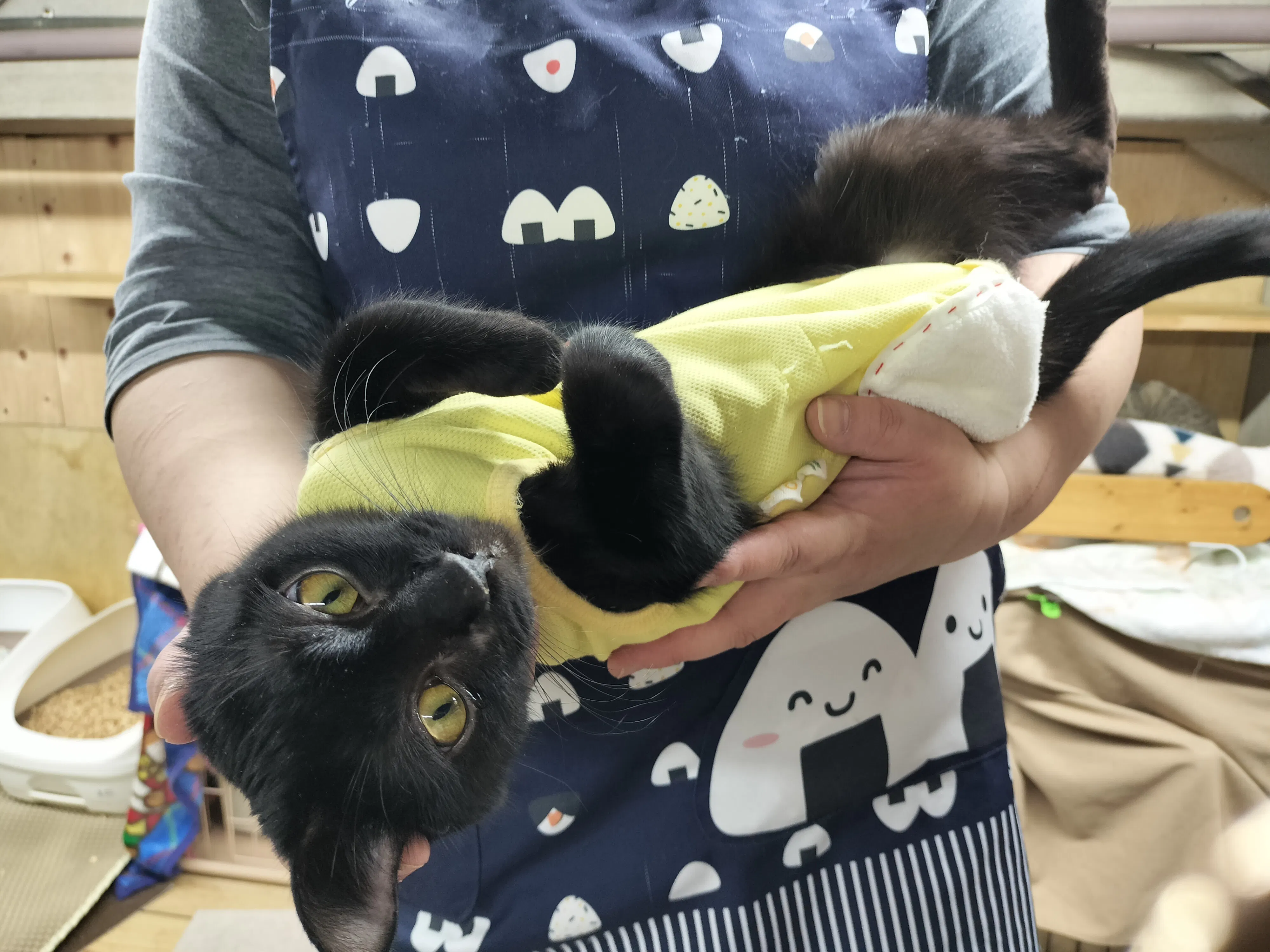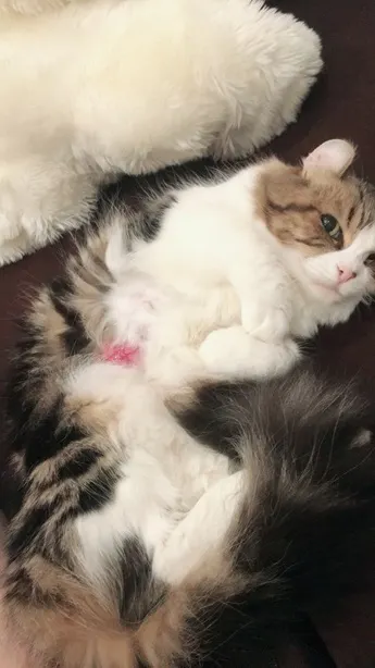 I ordered a variety of post-operative clothing and tried everything I could, hoping to keep the affected area clean and protect my cat with as little stress as possible, but nothing worked.