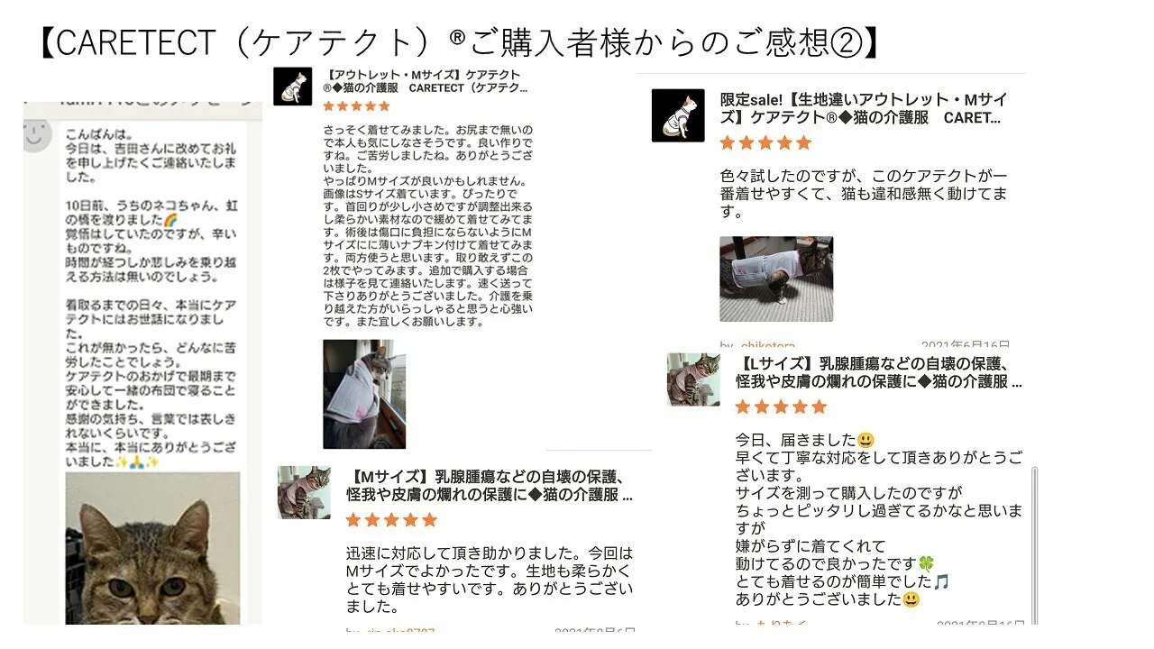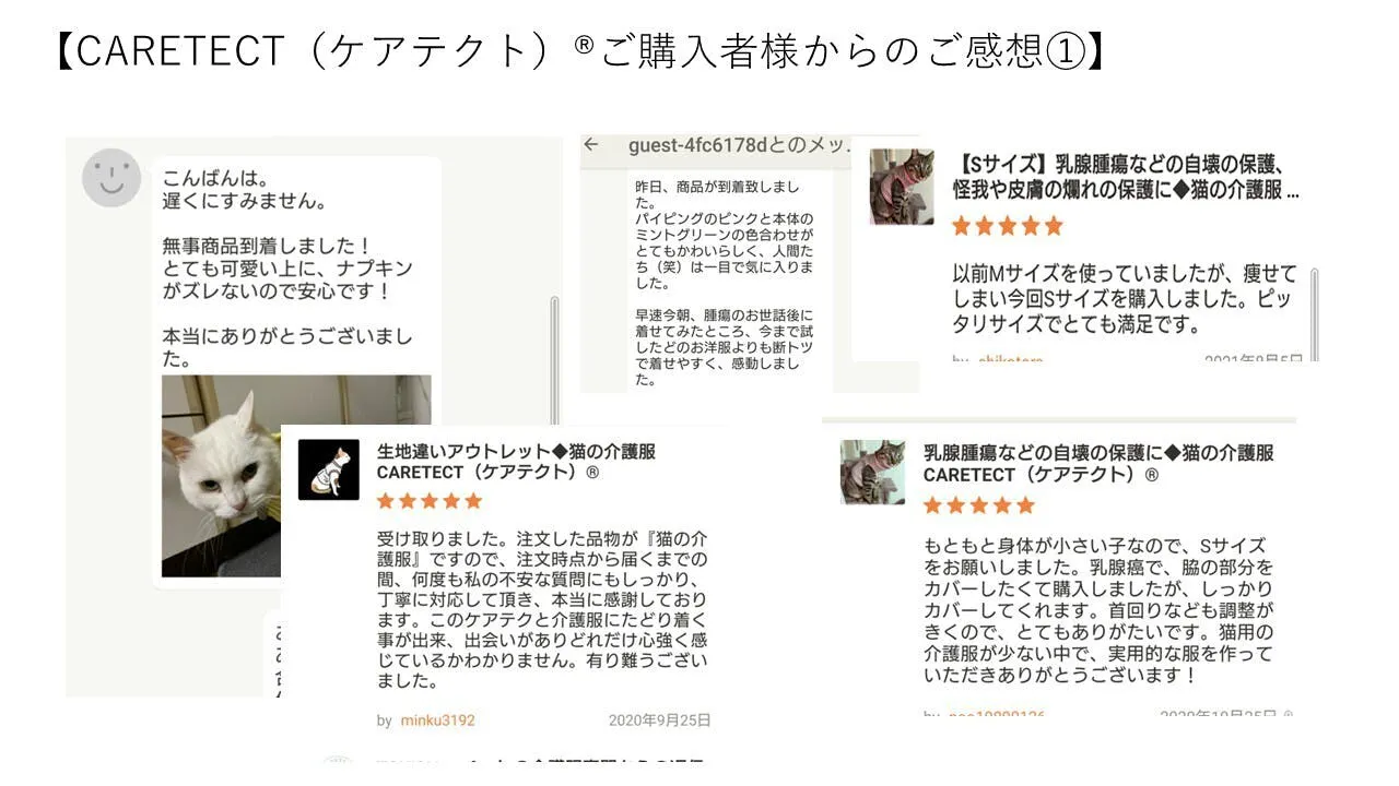 ●猫や犬の乳腺腫瘍や手術後の保護服として革新的で効果的な介護服【CARETECT®】を広く知ってもらうこと