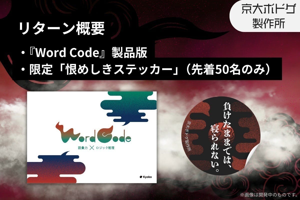その我々から見ても、自分たちが作ったという贔屓目なしに「Word Code」はゲームとして面白いです。また、今回は初めて関わったデザイナーの学生とともに、見た目にも手に触れて遊んでみたくなるような、愛着の湧く見た目になるようデザインには今まで以上に力を入れて作らせていただきました。