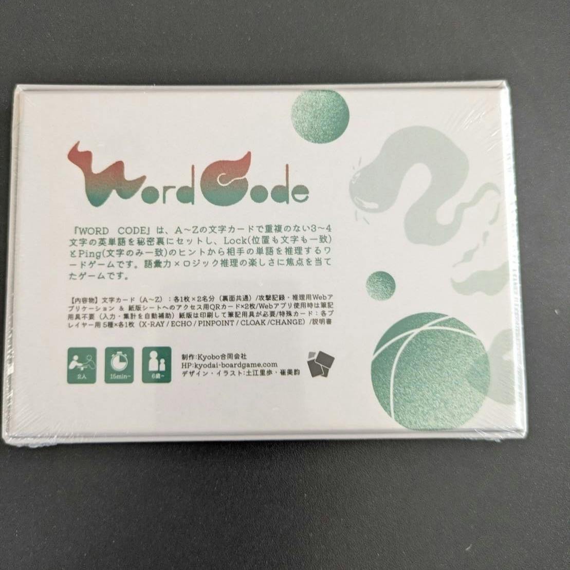 Word Codeは、英単語の文字を推理して相手のワードを当て合う、2人用対戦カードゲームです。