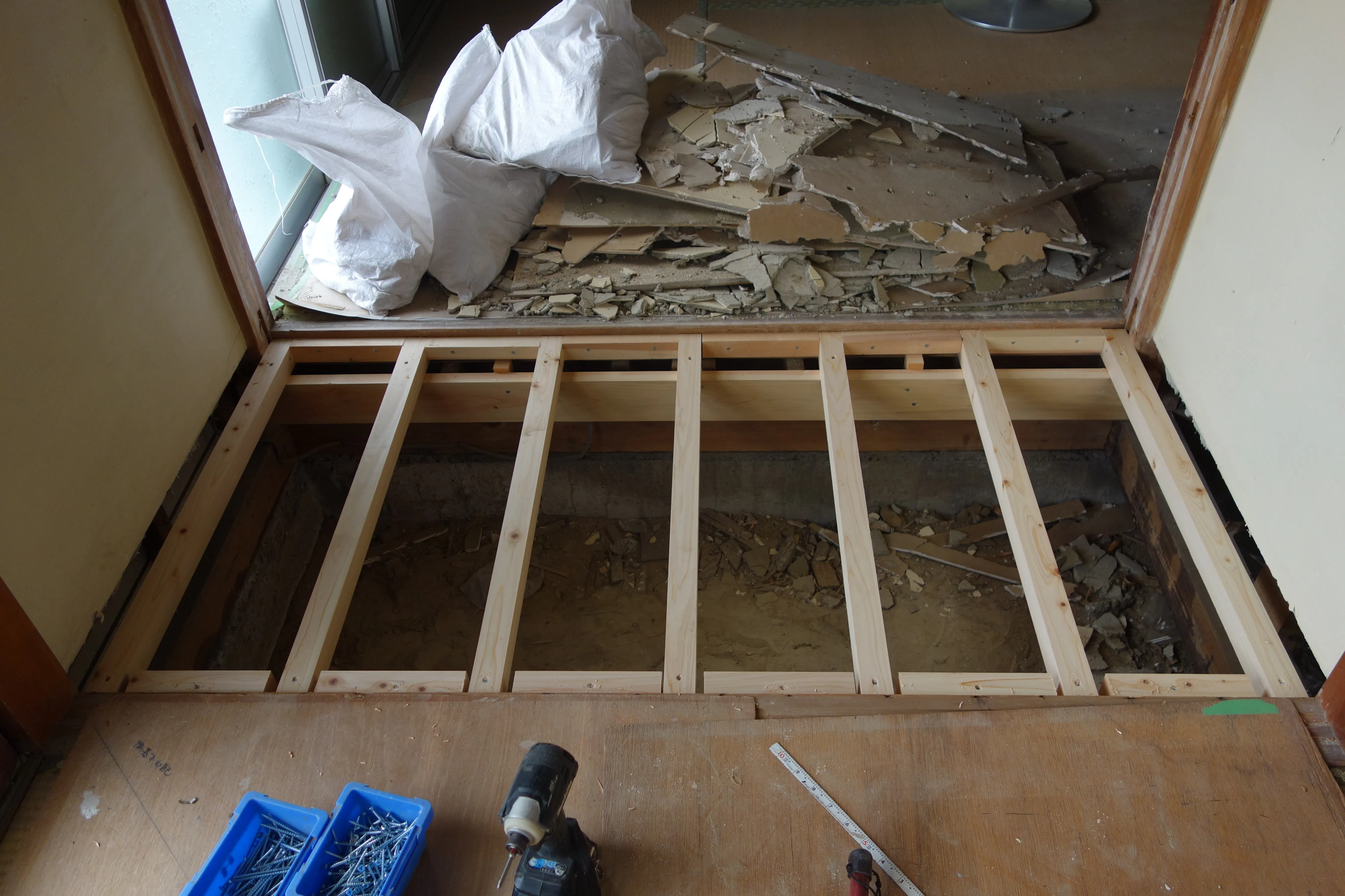 ・廊下の床が一部抜けている箇所がありましたので、それを直します。