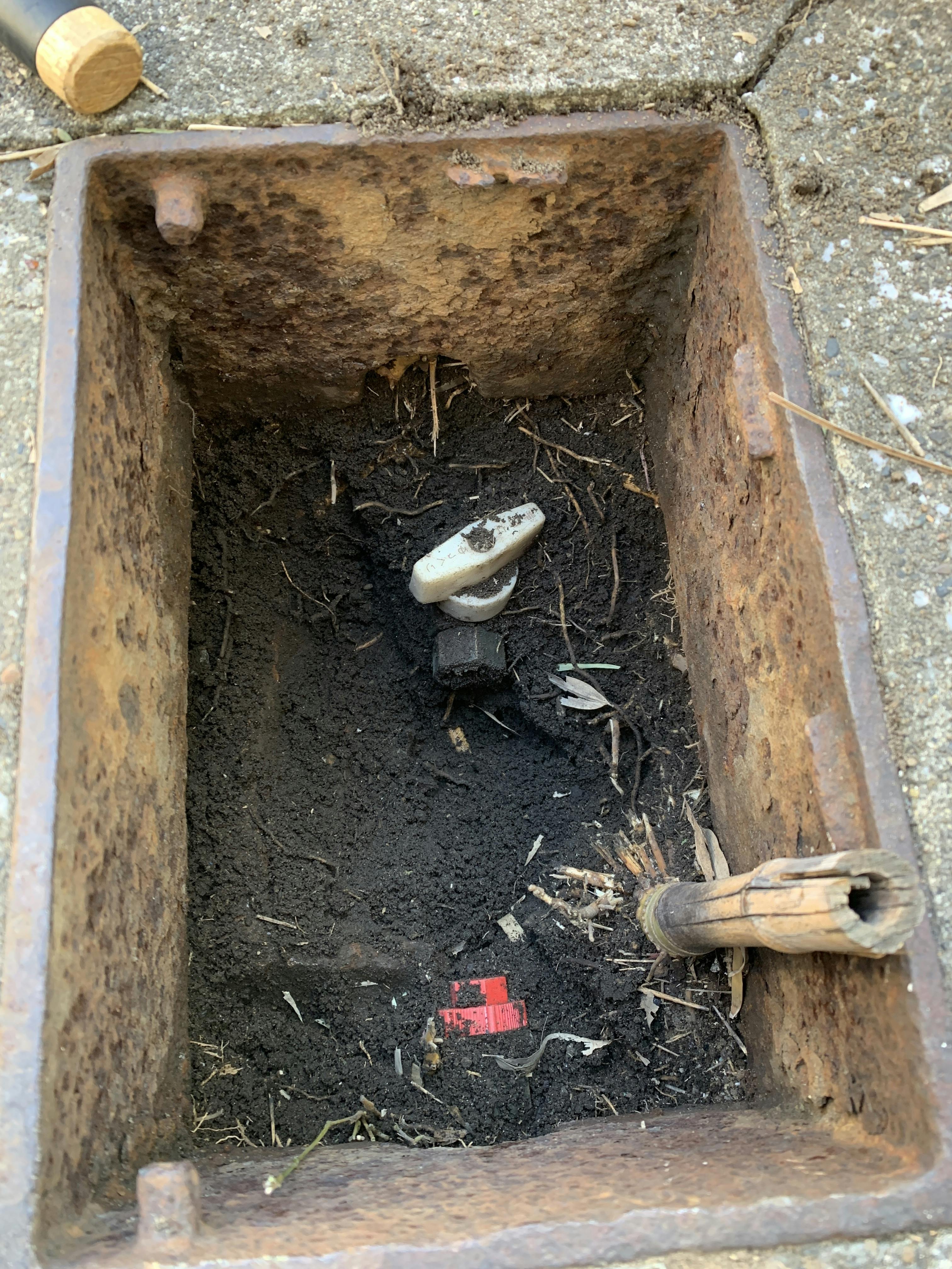 生きた竹を引っこ抜き、少し綺麗になった水道メーター設置場所です。