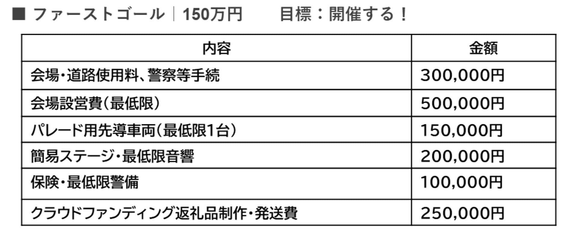 ※パレード行進が中止の際も、こちらのプロジェクトのリターン品は予定通り制作させて頂きますのでご支援ご協力を宜しくお願いいたします。
