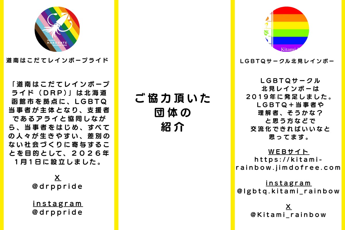 Instagram:@lgbtq.kitami_rainbow X:@Kitami_rainbow