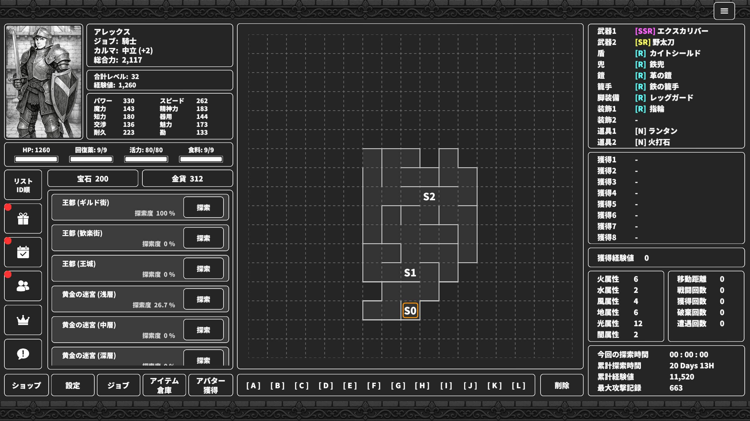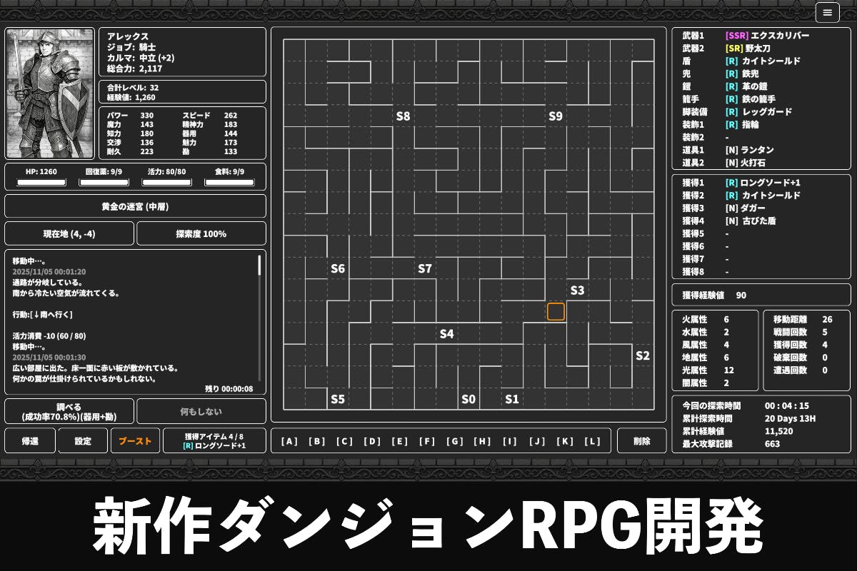 事前に方針を決めておけば、放置中もキャラクターは探索を進めてくれます。