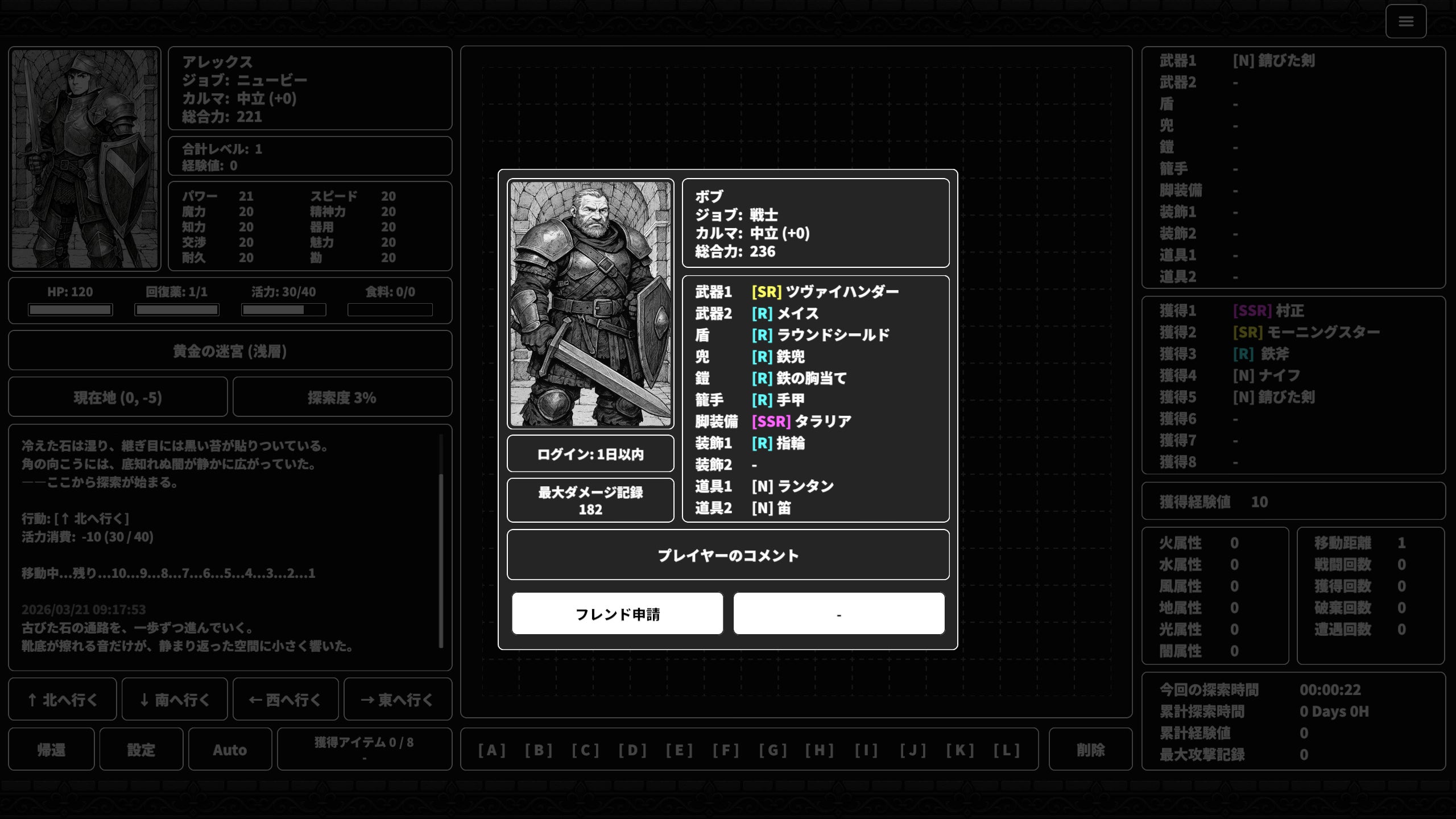UNDERDEEPでは、自分のキャラクターだけでなく、ほかのプレイヤーのキャラクター情報も確認できます。