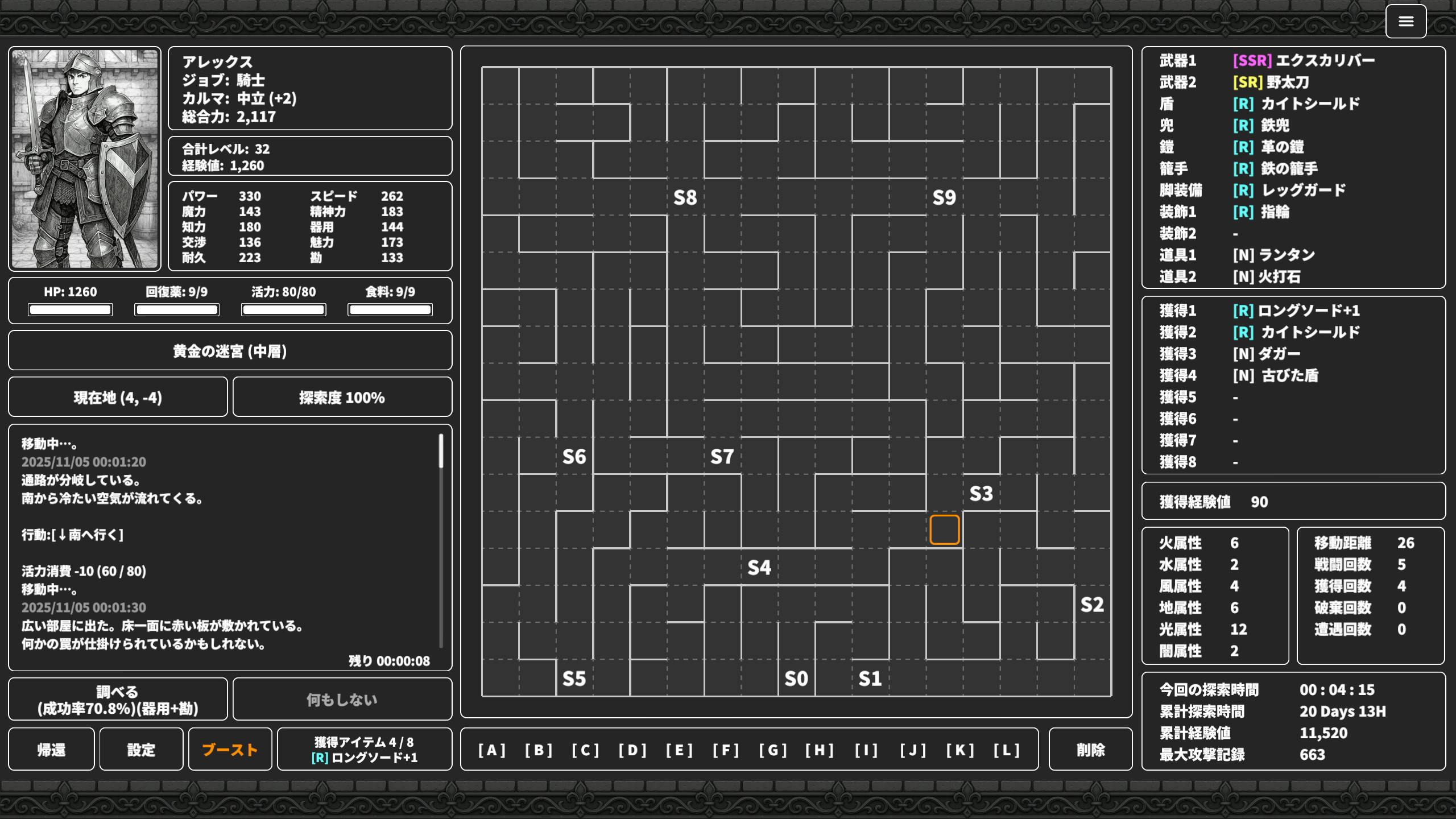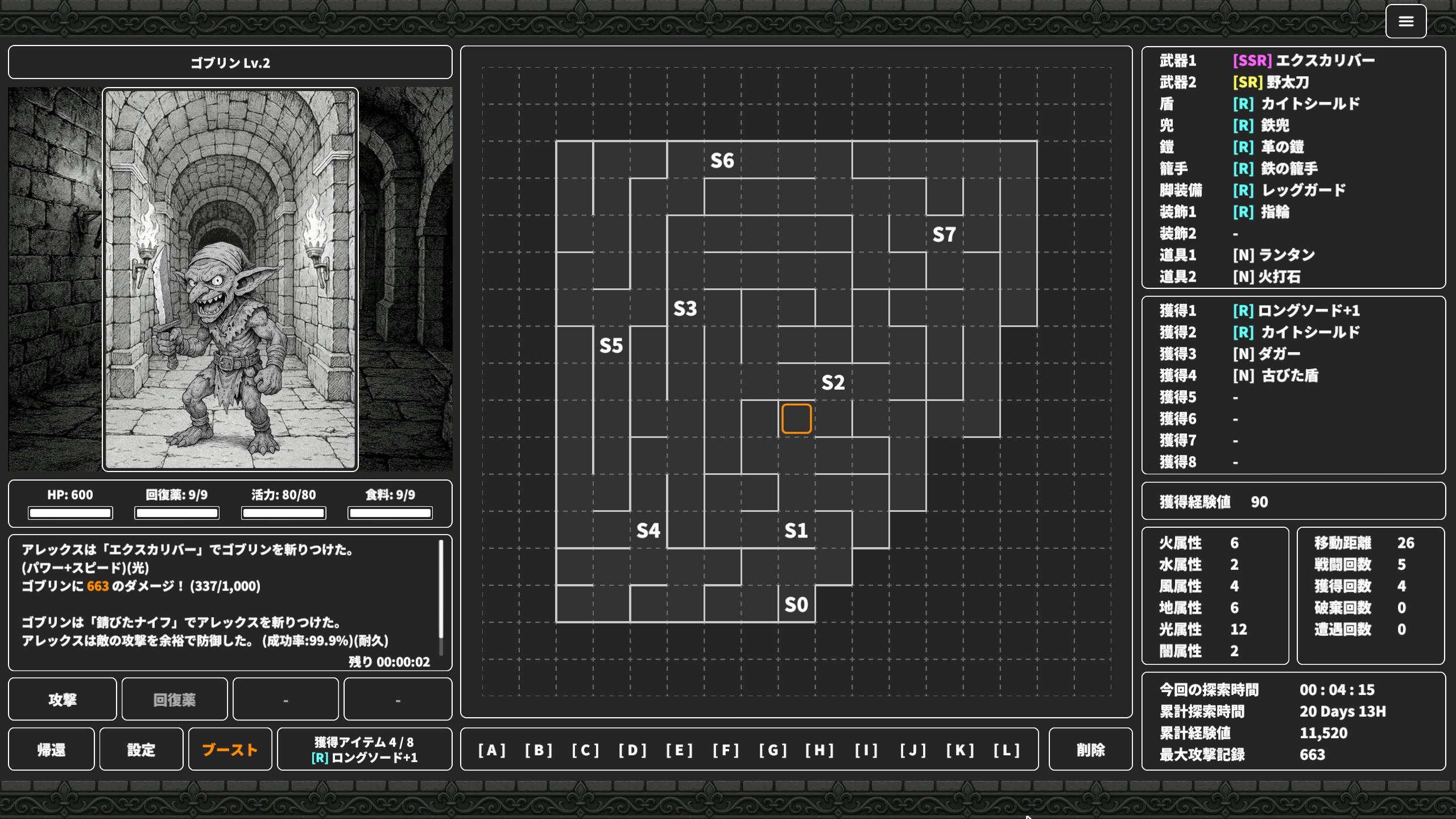 事前に方針を決めておけば、放置中もキャラクターは探索を進めてくれます。