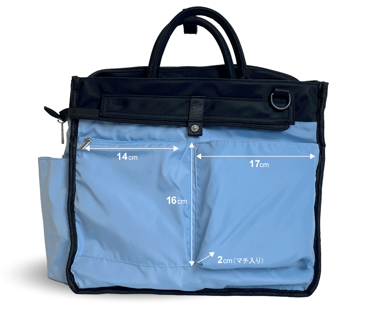 左右どちらからでも開閉でき、底に約2cmのマチを備えた立体ポケットを2つ搭載。厚みのあるアイテムもしっかり収納できます。
