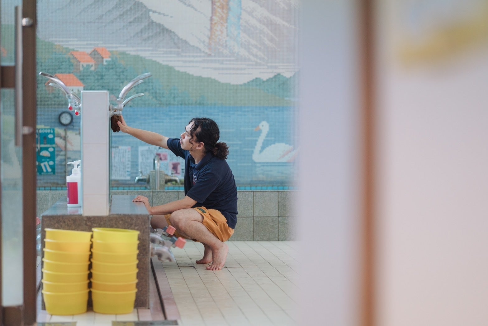 お客様に気持ちよく快適にご利用いただけるよう、毎朝欠かさずにお掃除をしてお湯を沸かしていました。