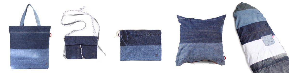 集められた古着のすべてが再利用されていくまでには、なかなか大変な労力を要するということを事業者の方からお聞きしていたので、少しでも力になれればと、デニムの古着を少しづつ提供してもらい「reused product (リユースプロダクト)」というレーベルのもと商品づくりにチャレンジしています。