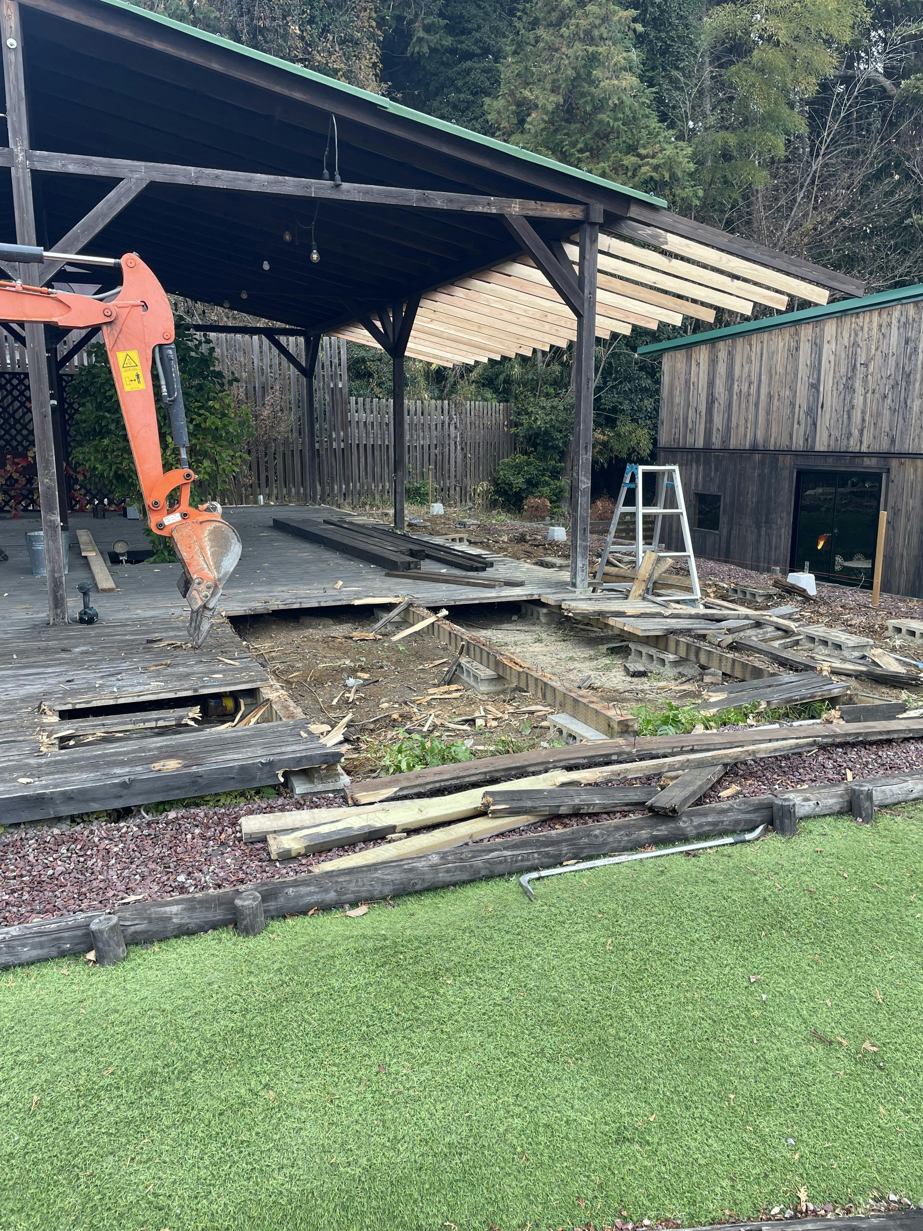 老朽化したウッドデッキの撤去を進行中