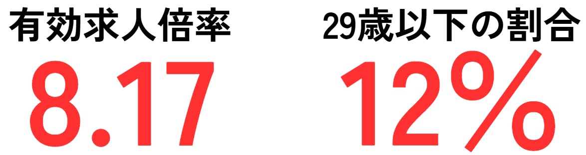 現在、多くの地方企業で採用難が深刻化しています。建設業では、有効求人倍率が8.17倍。これは、1人の若者を8社以上が奪い合っている状態です。