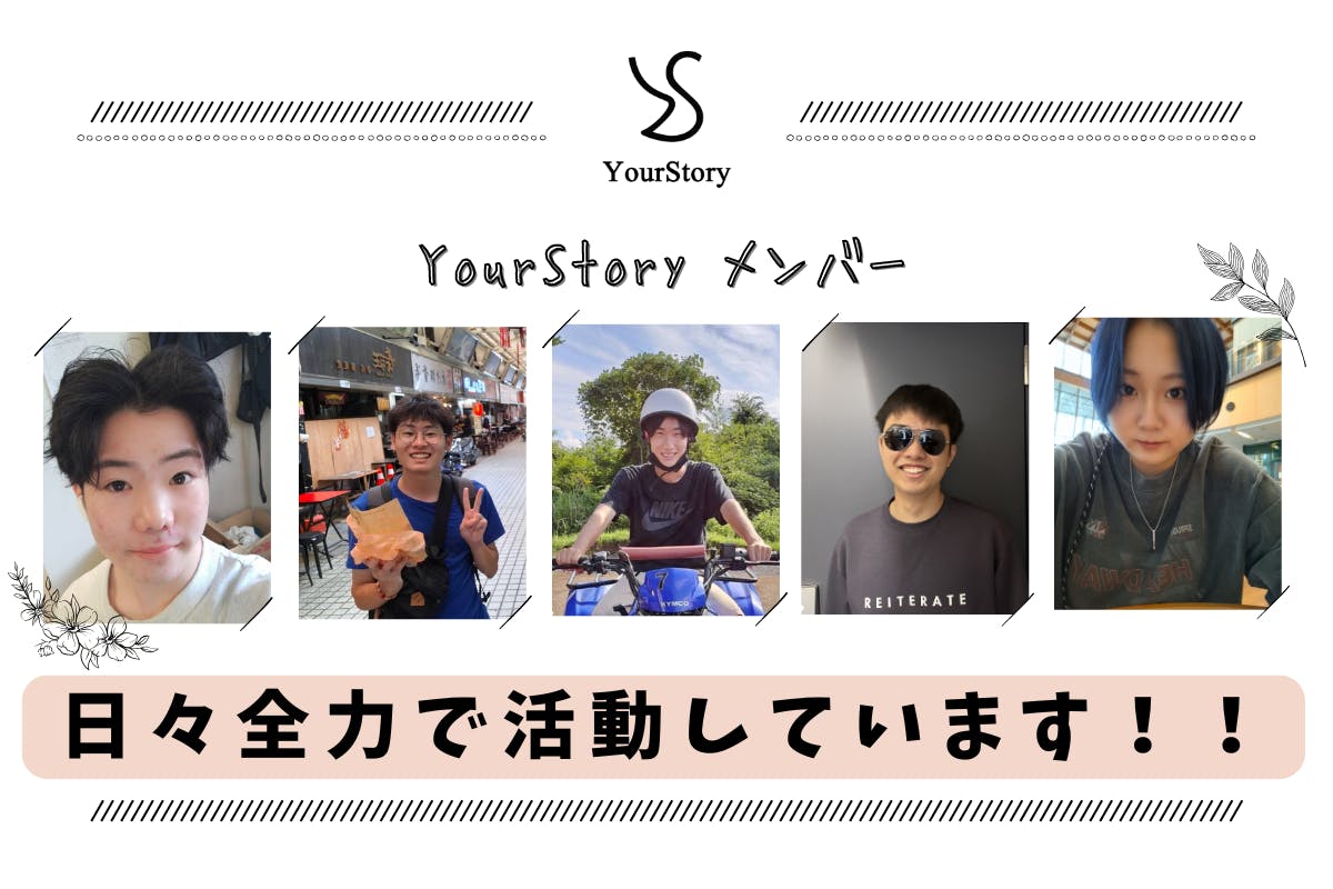 共通しているのは、好奇心が強く、「社会を少しでも良くしたい」という想いを持っていること。その想いをきっかけに集まり、YourStoryの活動を始めました。