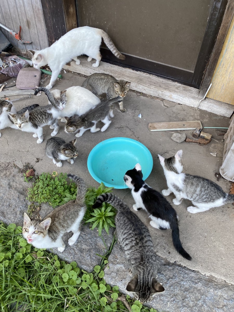 真夏に汗だくになりながらえさやりさんと10頭以上のねこにノミダニ駆除液をかけたこと