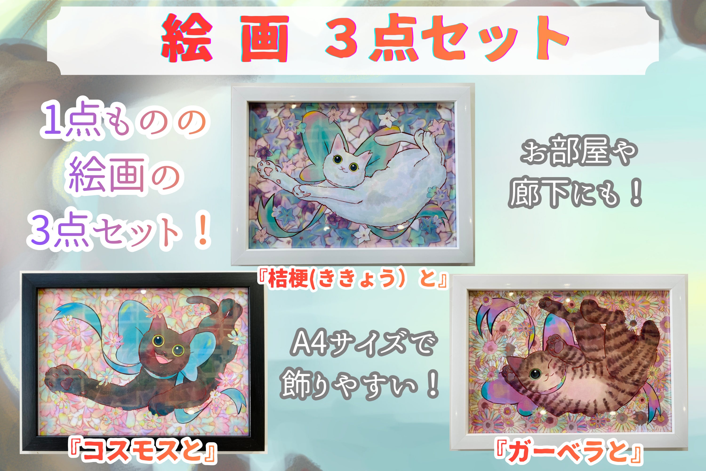 作品『桔梗(ききょう)と』『コスモスと』『ガーベラと』