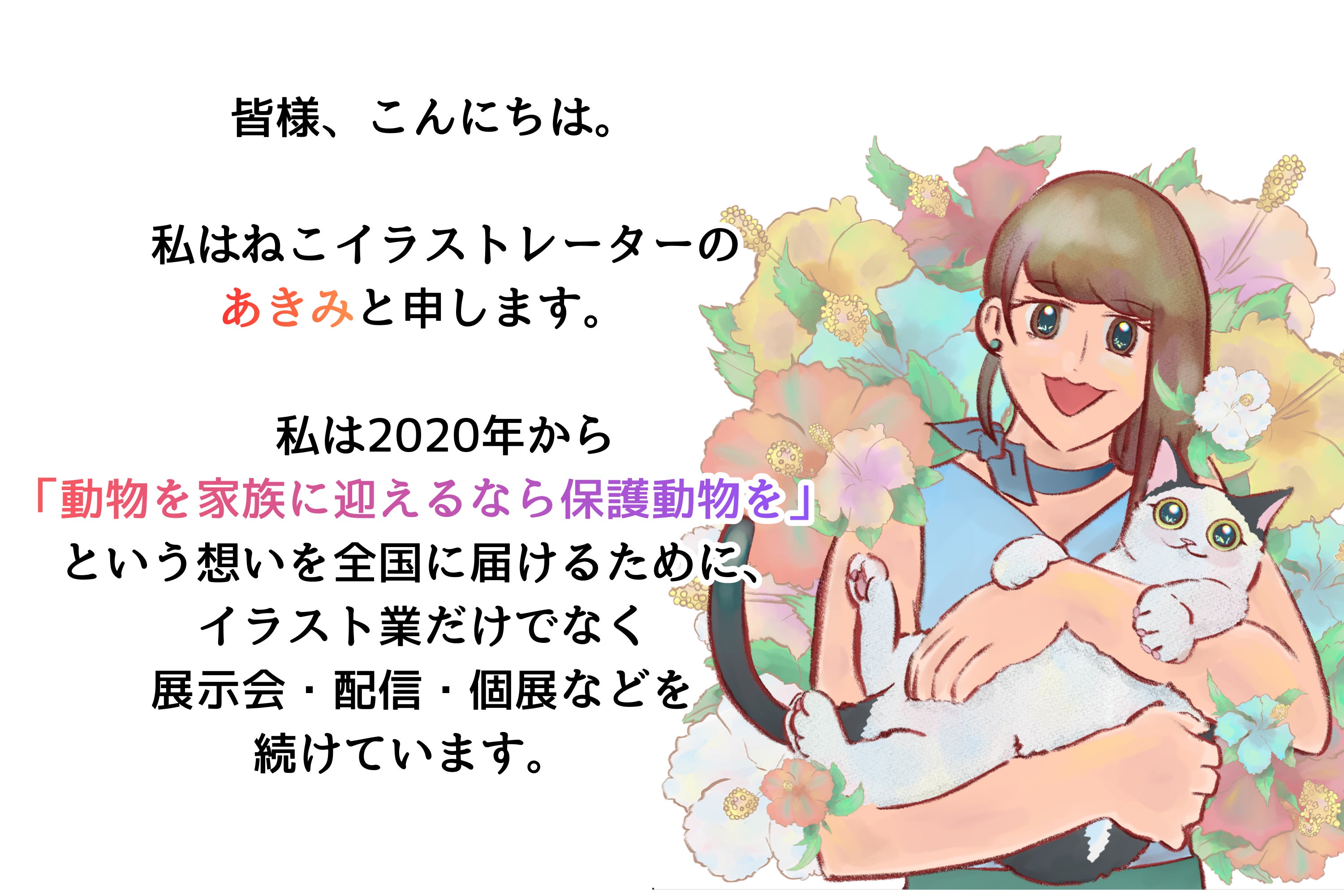 今回イラストを担当したのは、私大分県を拠点に保護猫支援をしているイラストレーター「あきみ」です。