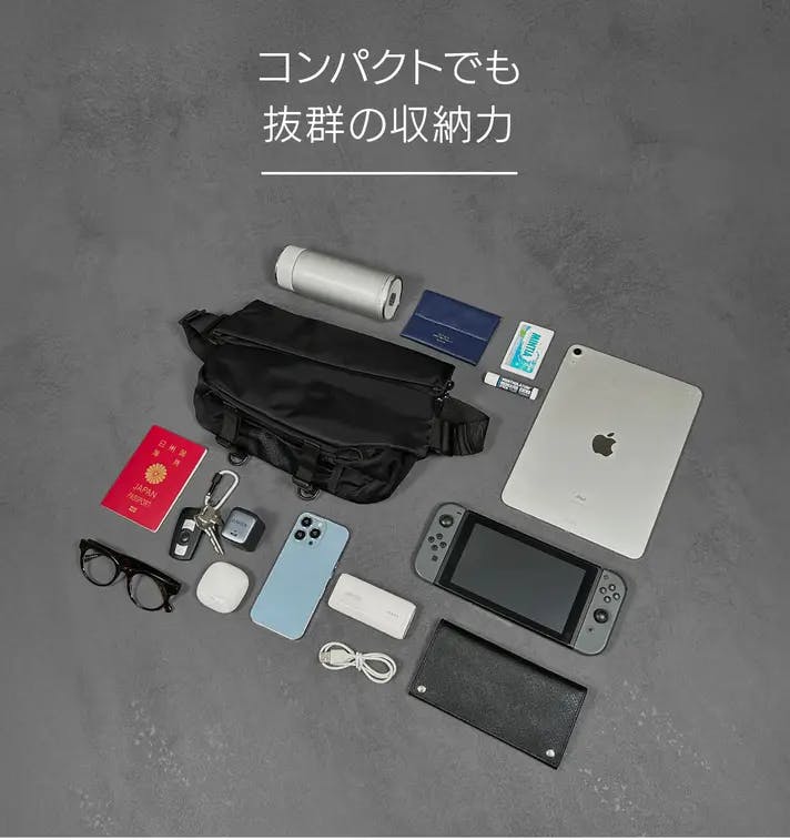 着脱可能なスマホポーチが付属!体にフィットする機能満載の日本製スリングバッグ