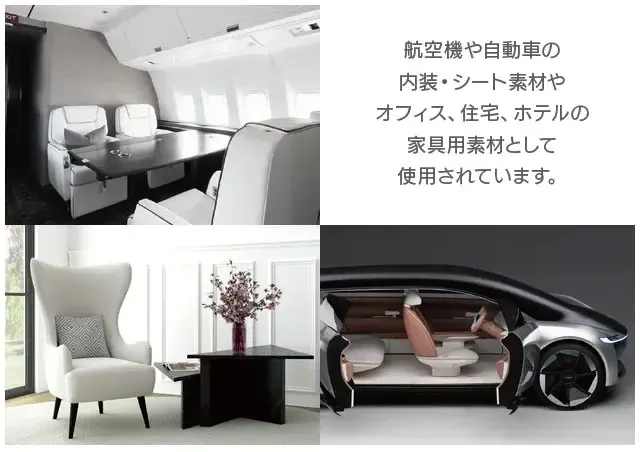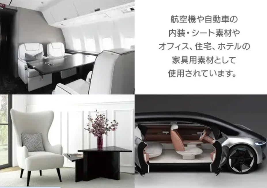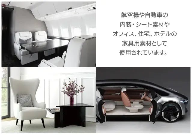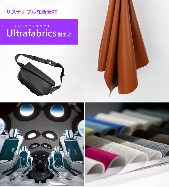 生地は、航空機や高級車の内装、高級家具などに使用されているリユース素材を採用。