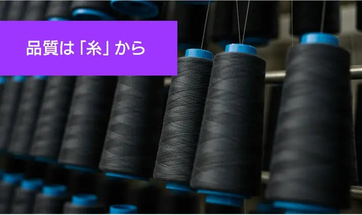 バックメーカーのこだわり意外と知られていませんが「糸」の品質がバッグの品質に大きく影響しています。当社では厳選した高品質な糸を工場に直接指定することで品質を保っています。