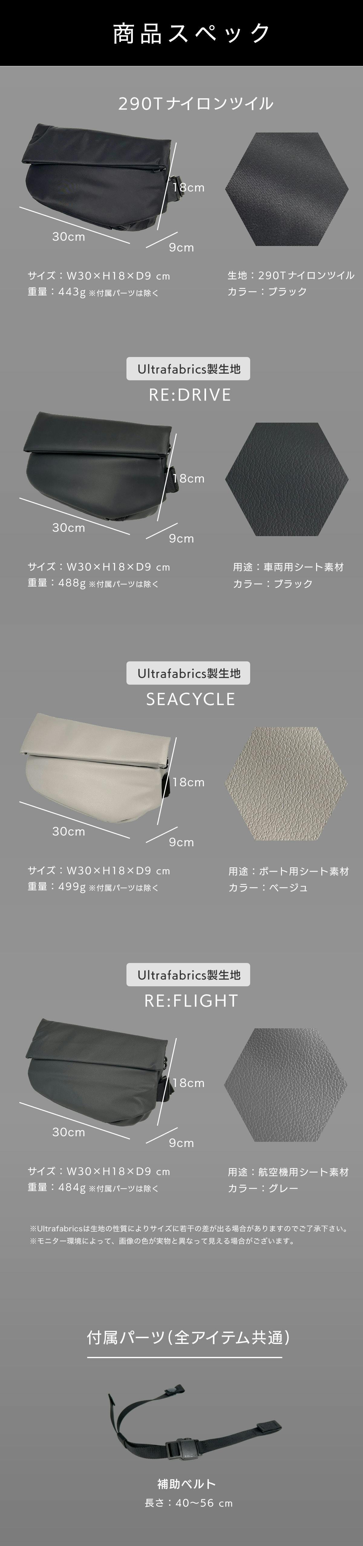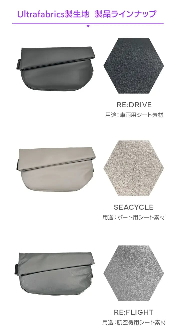 本製品は、全4モデルのうち3モデルに、ウルトラファブリックスグループ・第一化成の合成皮革ロス素材を使用したコラボモデルです。