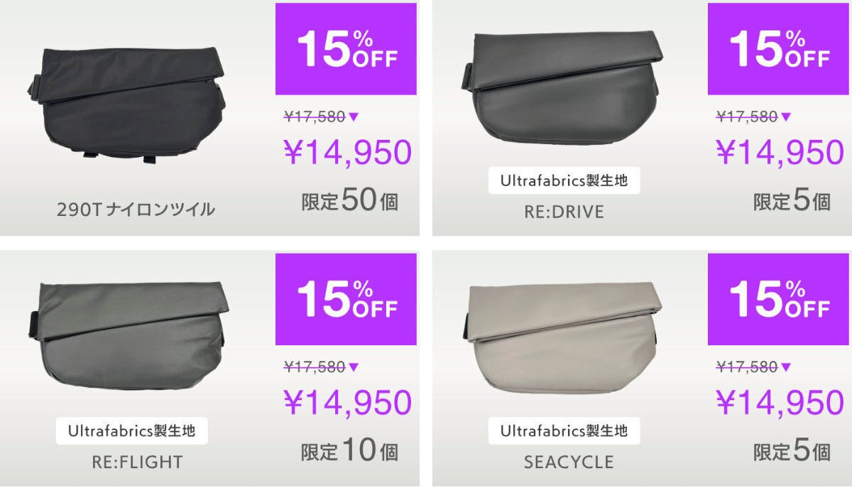 2026/02/24 10:00皆様プロジェクトも本日が最終日となりました。今回のプロジェクトでは、第一化成㈱の高品質なリユース生地を活用した「数量限定・二度と作れないモデル」を展開してまいりました。限定モデルは、第一化成㈱の生地残量からしか生産できないため、世界で限定数量しか存在しないバッグです。現在、残りもわずかとなっております。プロジェクト終了後は、限定生地のモデルは在庫限りで終了となり、210Dナイロンツイールの定番モデルについては通常価格で、オンラインショップ、マルイDeepsee様などの各店舗で販売を続けてまいります。また、3月9日〜4月10日の期間、銀座ロフトさんの特設ステージにて当社イベントを実施予定です。これまでCAMPFIREでもご好評いただいた「手のひらサイズの折り畳みリュック」や「折り畳みビッグボストン」などを中心に展開いたします。もし限定生地のバッグが残っていれば、そちらでもお披露目できるかと思います。もし宜しければ銀座ロフトにお越しください。本日は最終日となりますが、最後まで応援いただけますと幸いです。 もっと見る