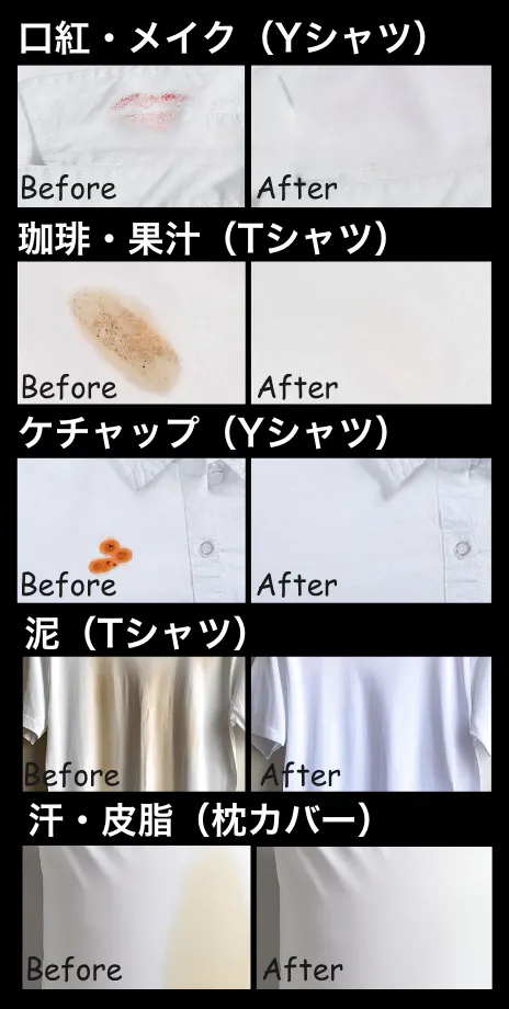 洗濯物の表面と線維の中からはたらきかけて、しつこい汚れを落とします。