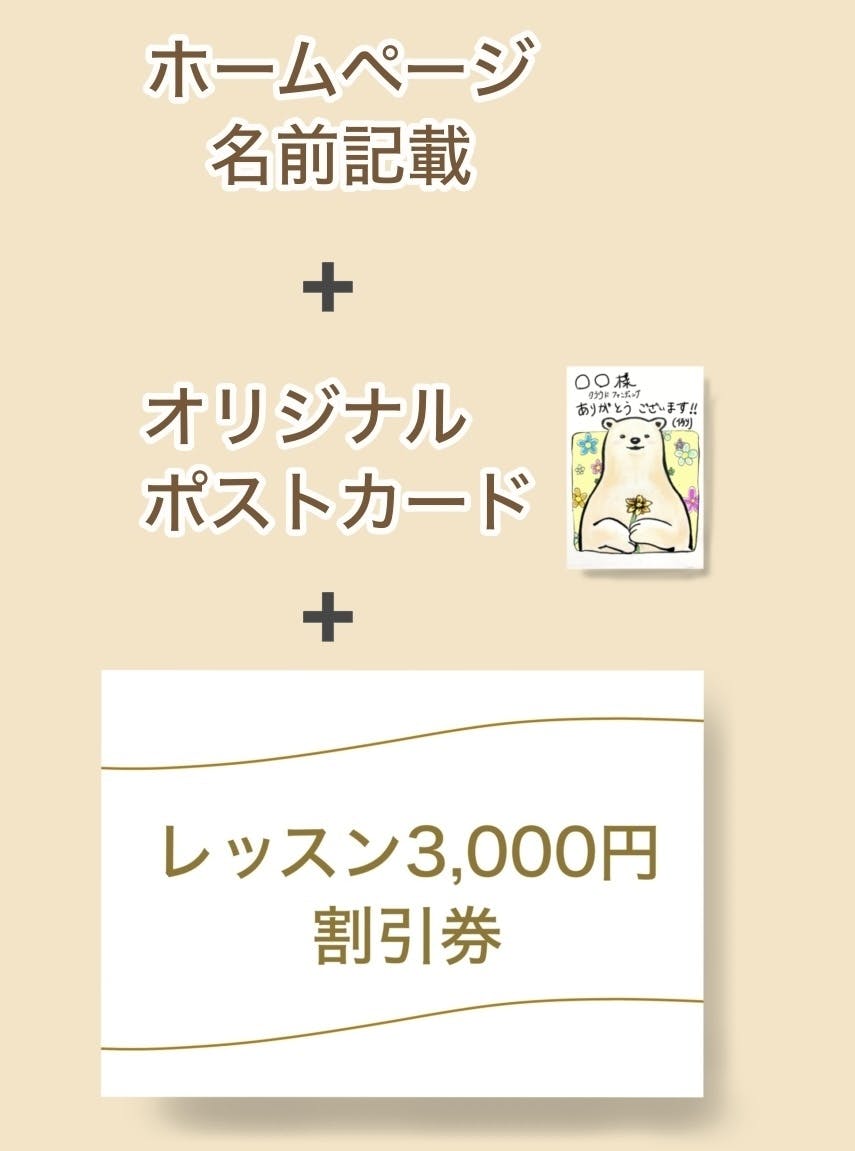 500円からの支援が可能となります。500円以上の支援をしてくださった方にはリターンとして教室立ち上げ支援者として教室ホームページに名前をクレジットさせていただきます。(記載不要も可)↓