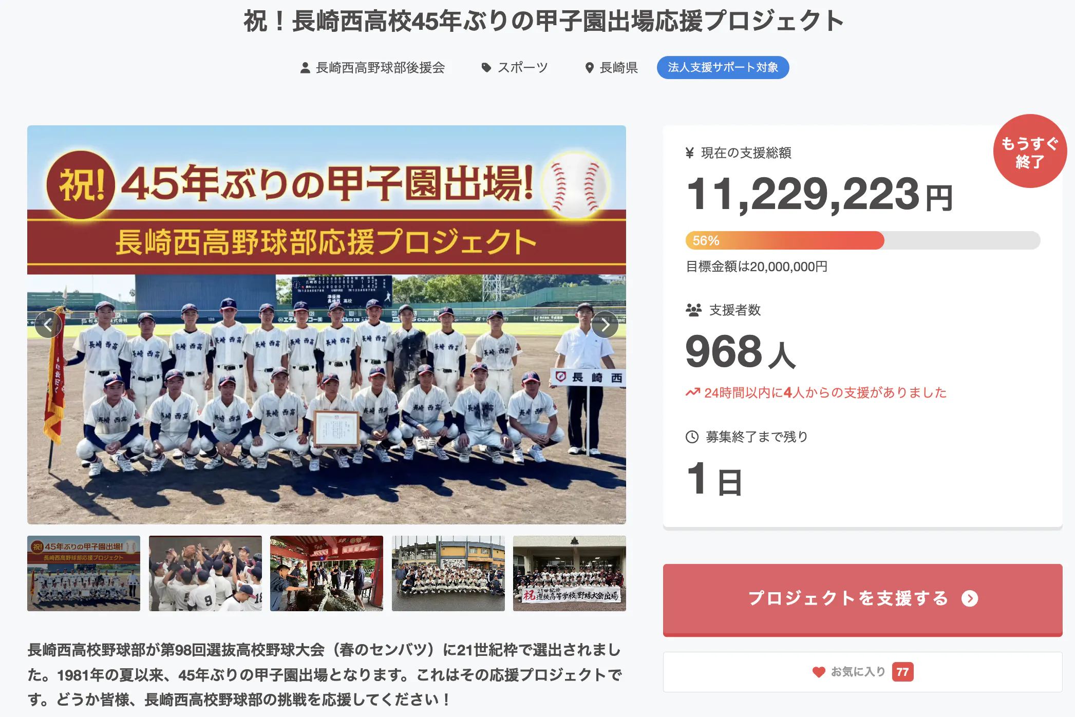 センバツ出場が決定した1月30日よりクラウドファンディングを開始し、選手たちが1日でも多く滞在できることを願って、大会終了日の3月31日までクラウドファンディングを継続します。