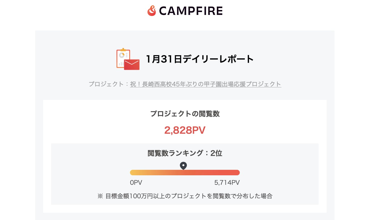 CAMPFIRE内の閲覧数ランキング(PV数)も好調です!