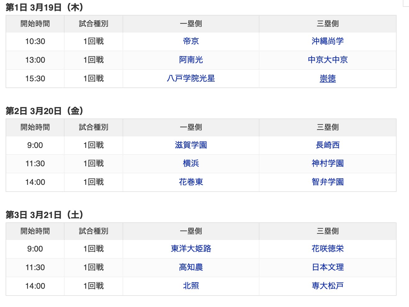 試合は第2日の第1試合です。