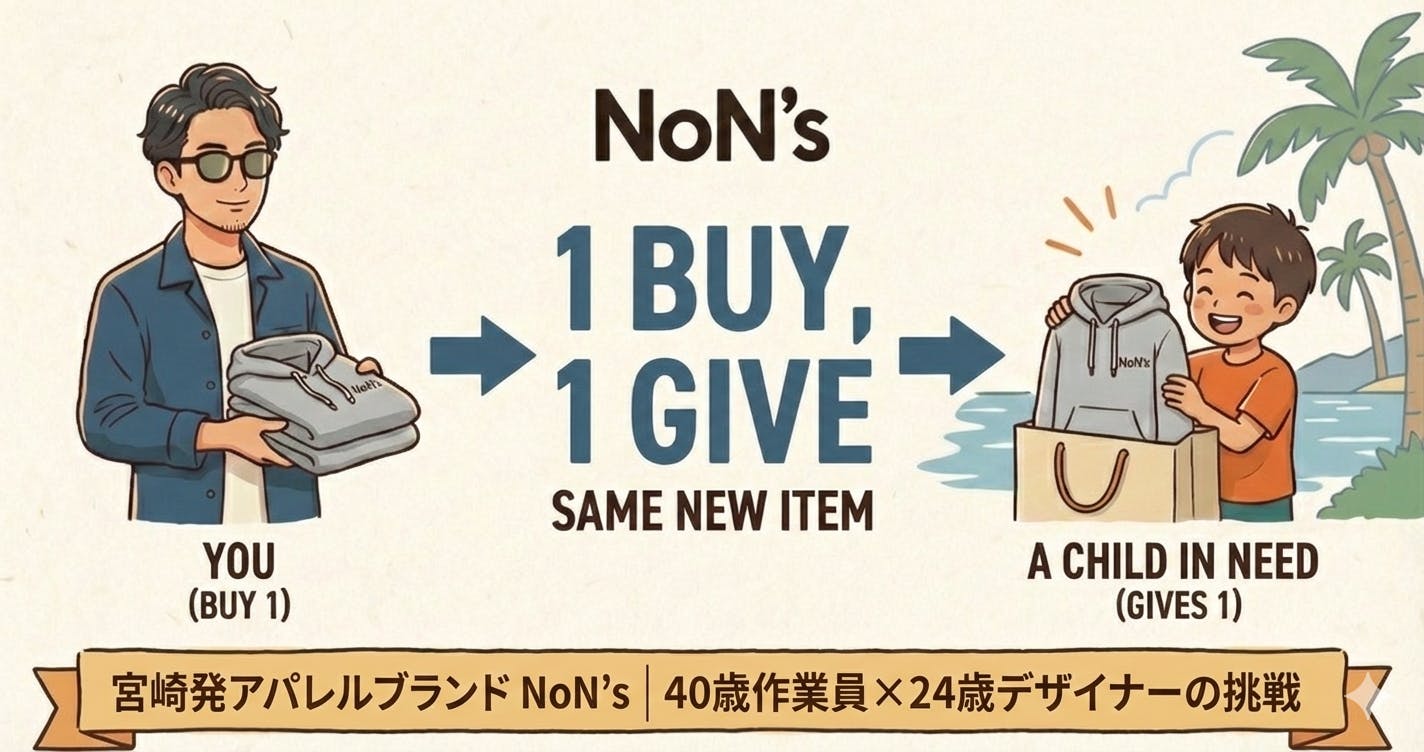 2026/02/23 22:50先ほど、皆様の泥臭くも熱いご支援のおかげで、ついに目標金額の100%を達成……したのも束の間、そのまま勢いは止まらず現在【112%】を突破しました!ただの宮崎の無名ブランドが掲げた「子供の貧困を服で終わらせる」という無謀な挑戦。それに巻き込まれ、最後に分厚い壁をぶち壊してくれたのは、紛れもなく画面の向こうにいる皆様一人一人です。俺たちの最強の「共犯者」になってくれて、本当に、本当にありがとうございます。でも、俺たちの戦いはここで終わりません。1着でも多く、1人でも多くの子供たちにこの服と「笑顔」を届けるため。そして、NoN'sというブランドの「伝説」を作るため。ここから最終日まで、新たに**【ネクストゴール:50万円】**に死に物狂いで挑みます!追加で集まった資金は、・『Buy One, Give One』でさらに多くの子供たちへ服を届けるための製造費・新ライン【Artisan Line】の研究・開発費(ハンドメイド作品)として、全額ブチ込みます。この熱狂は、まだまだ終わらせません。どうか最終日まで、俺たちの泥臭い快進撃を見届けて、そして周りの仲間にもこのプロジェクトを広めてもらえると嬉しいです。引き続き、一緒に戦ってください!よろしくお願いいたします! もっと見る【御礼】開始約40時間で50%突破!北海道へ向かう空港で震えています。