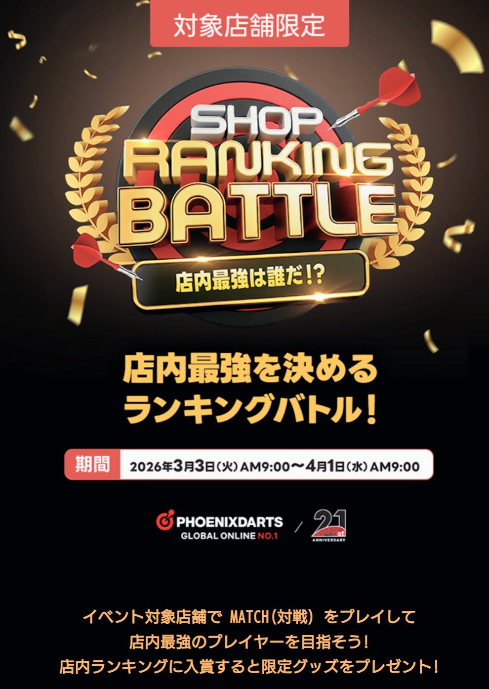 3月から始まるPHOENIXDARTS店舗限定イベント!対象店舗に選ばれました!