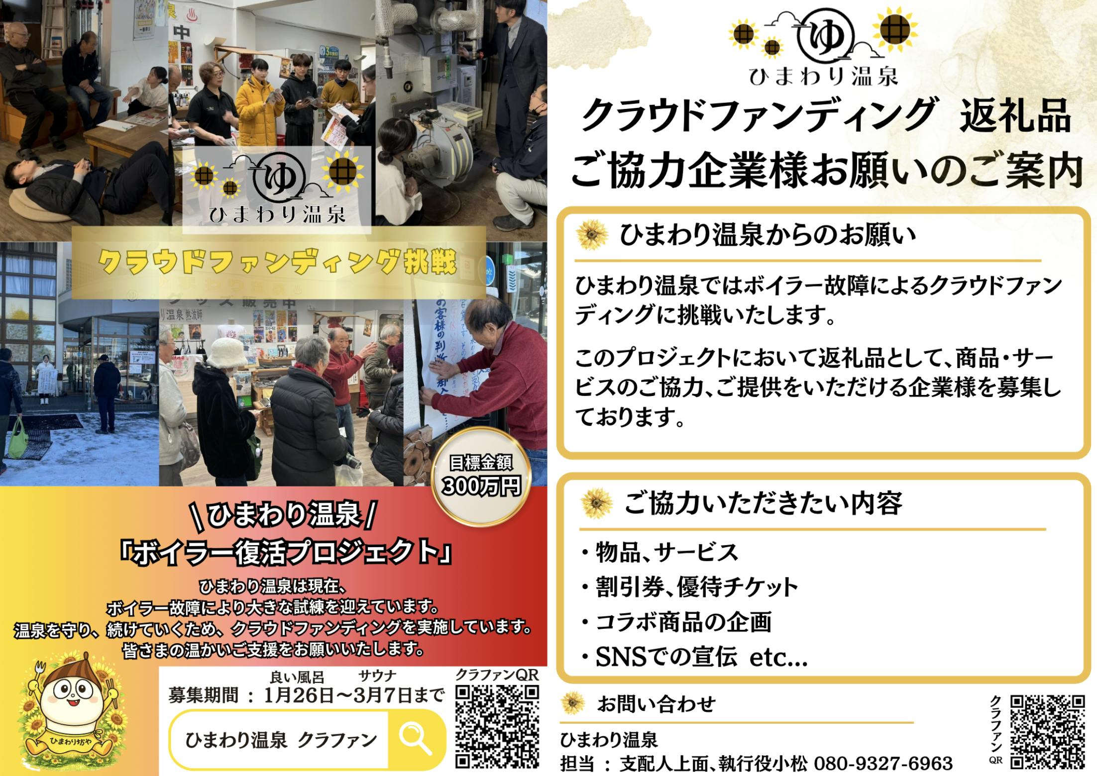 ぜひこのプロジェクトに参加して、ひまわり温泉、スタッフの皆様を応援しましょう!