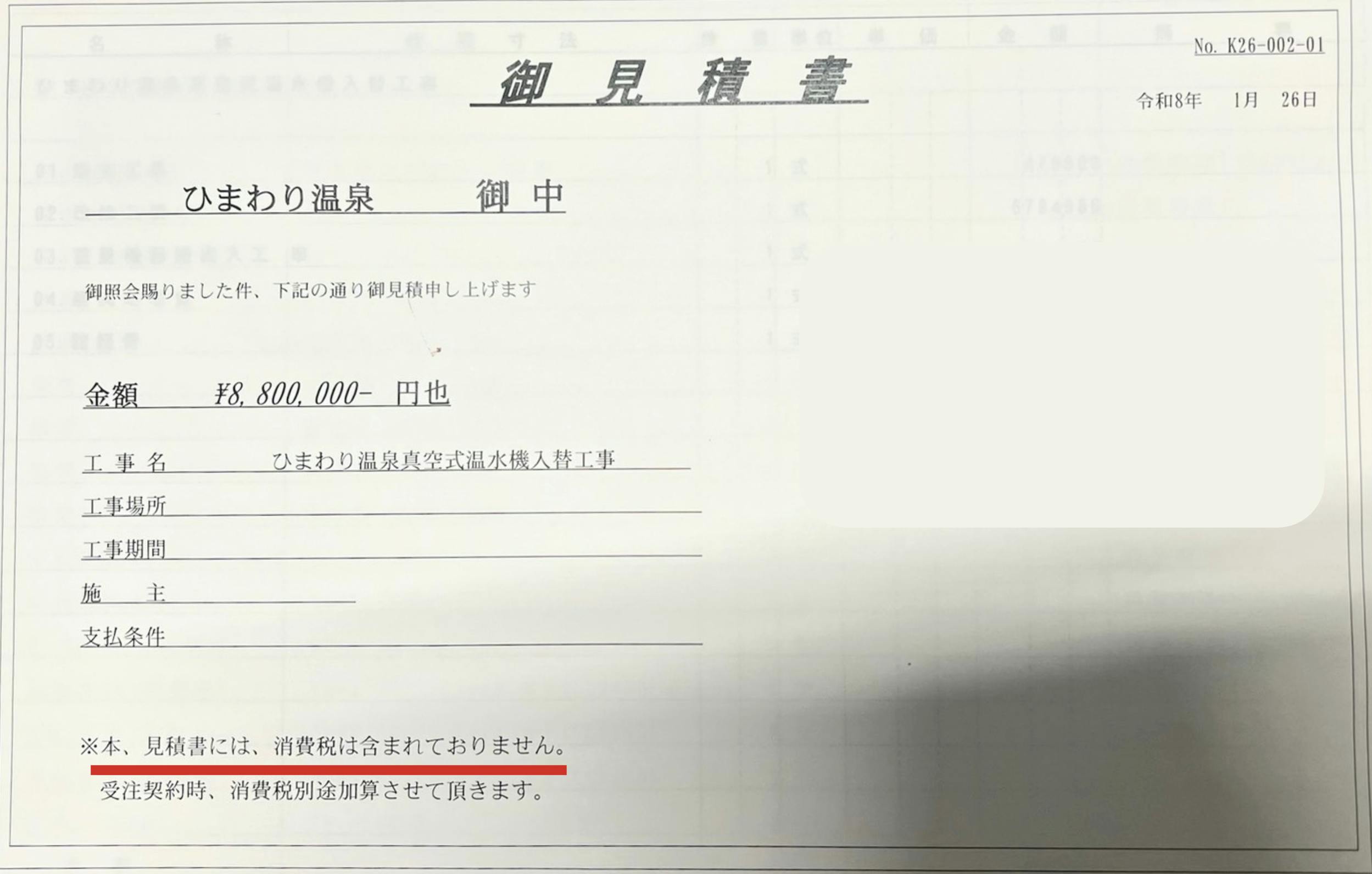 そんな中、、ひまわり温泉さんのボイラーが使えない状態になっている、。ということを知りました。