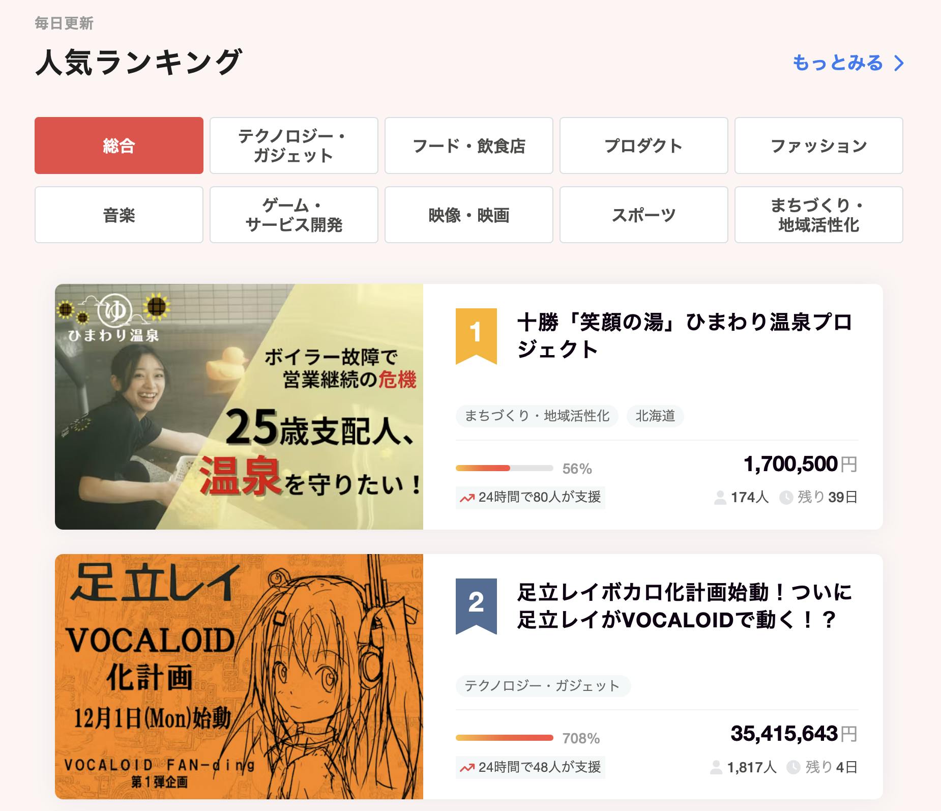 CAMPFIRE 人気ランキング《全国1位》になりました!