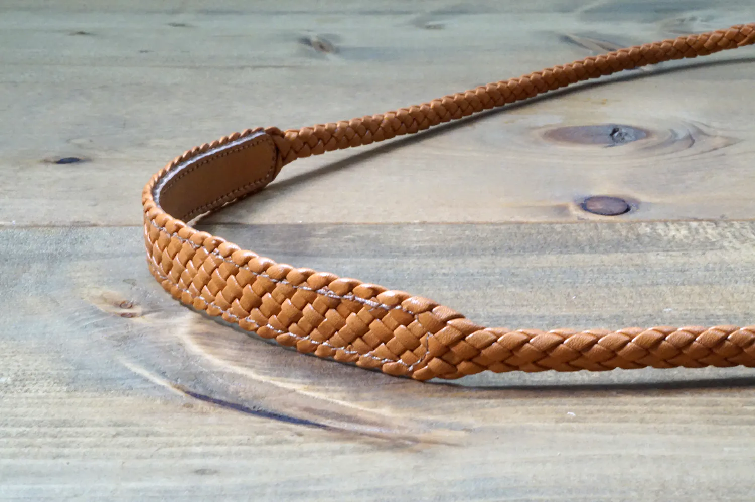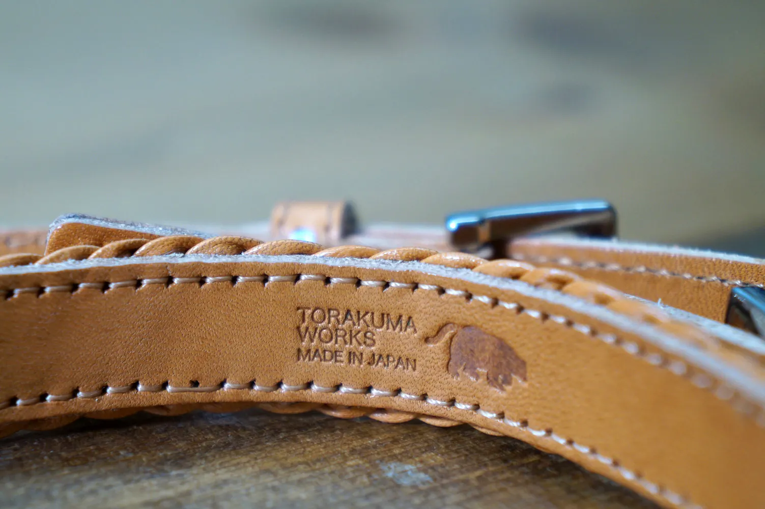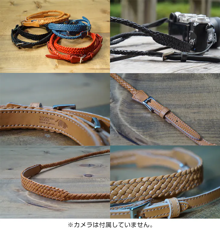 革メーカーの工場が連なる埼玉県の一角に、革紐の伝統技法を国内で唯一継承する老舗工場があります。一本のナイロン糸の芯材を日本最高の本革「栃木レザー」でやさしく包んで、その革紐を8本、丁寧に手編みしてできたのが本品。どこを探してもない、“細いからしなやか、細いのに強い”お洒落な本革編み込みカメラストラップが仕上がりました。